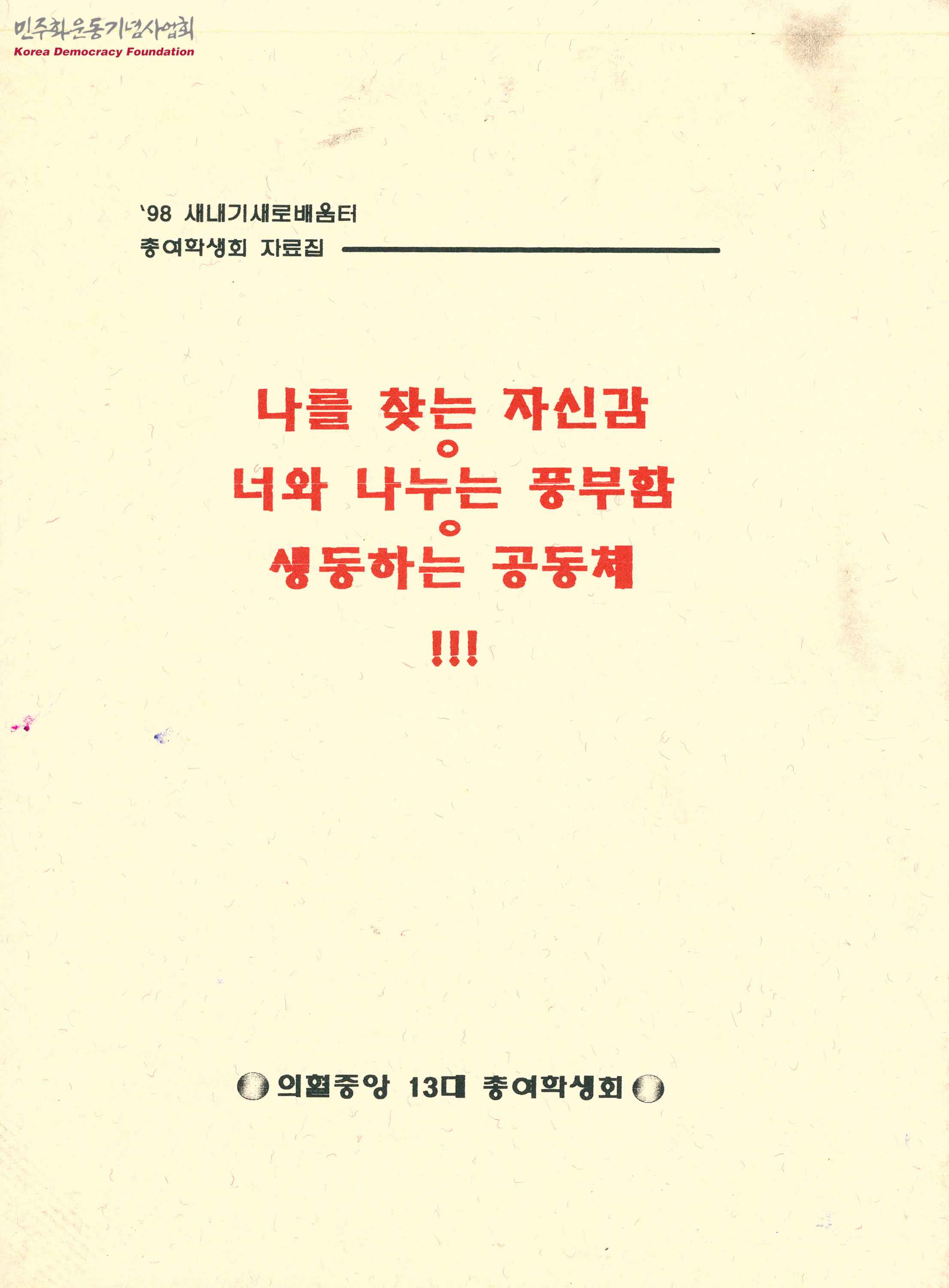 98 새내기새로배움터 총여학생회 자료집 - 나를 찾는 자신감·너와 나누는 풍부함·생동하는 공동체!!!