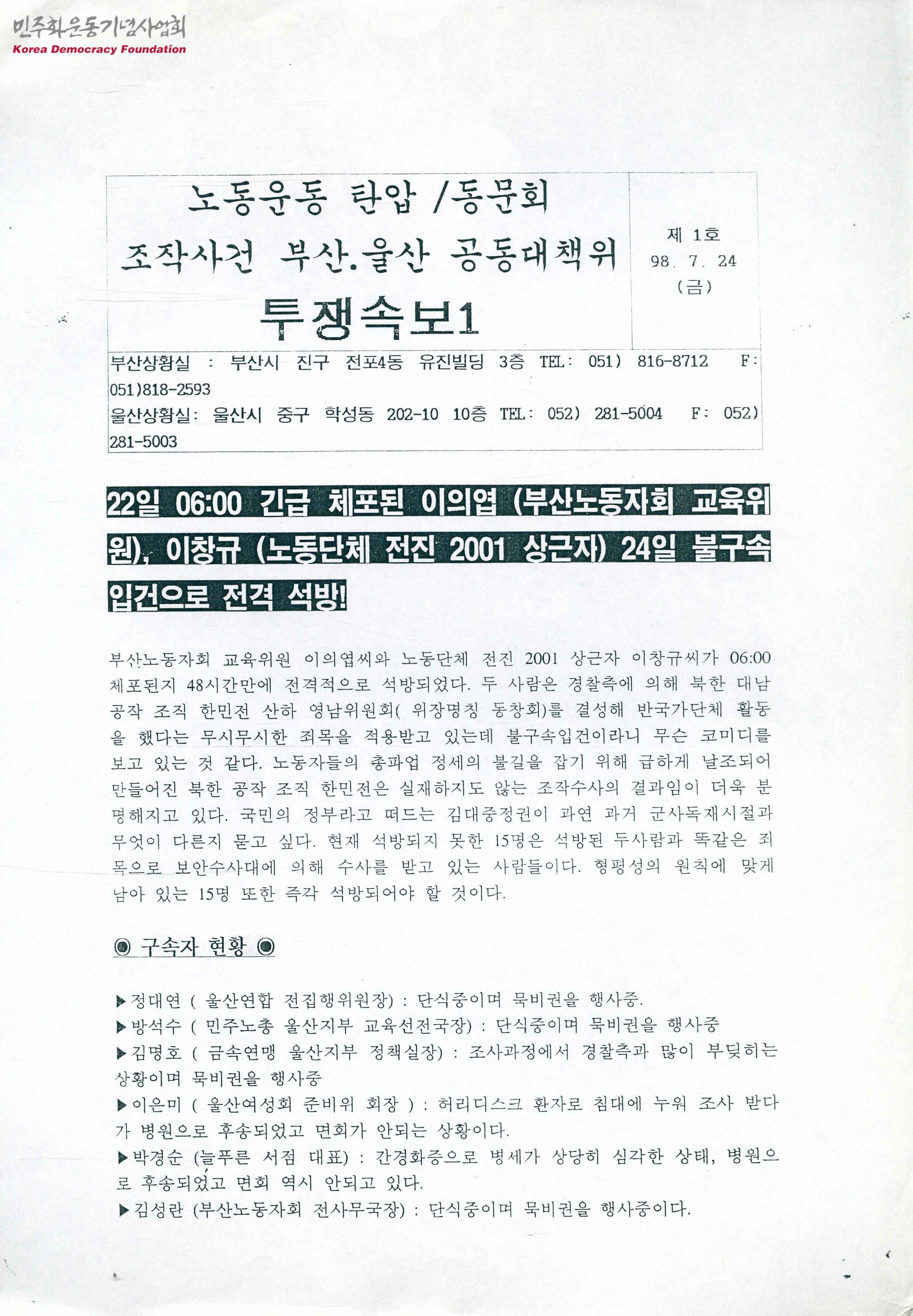 투쟁속보1 제1호[이의협, 이창규 석방관련]
