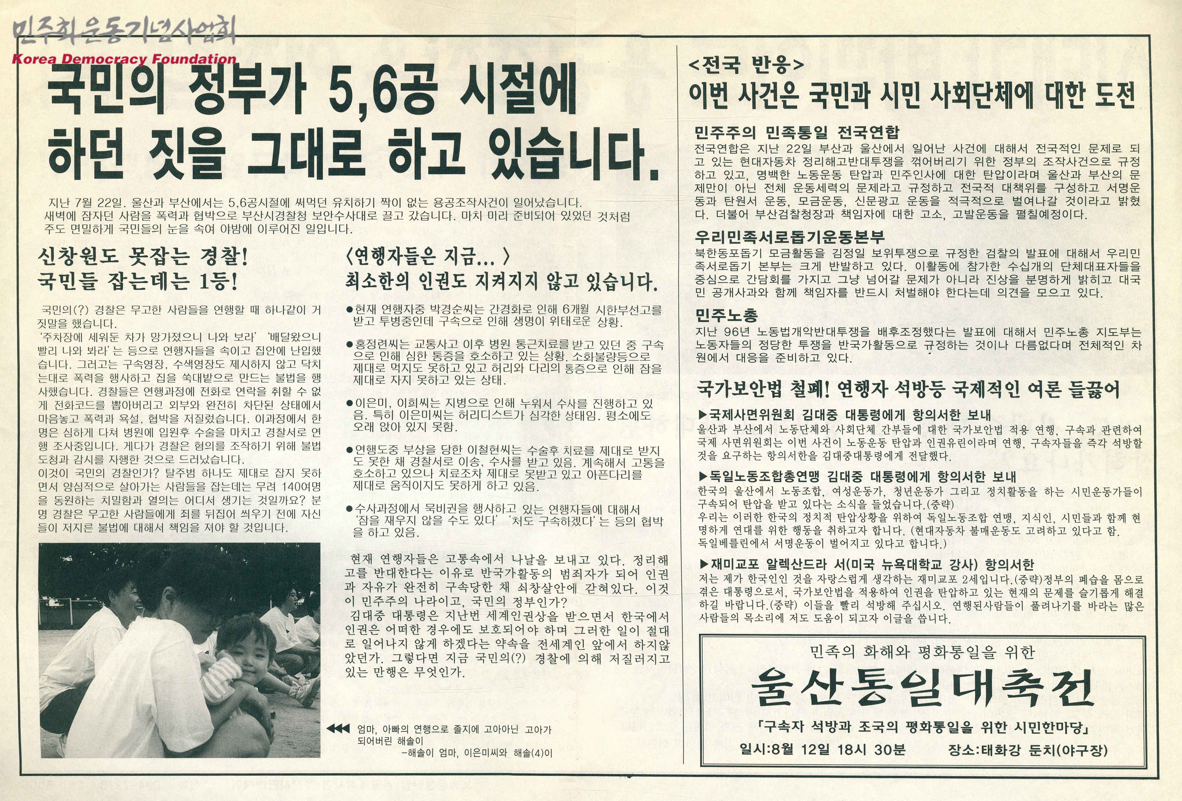 - 부산과 울산에서 발생한 노동 및 민중운동 단체 간부들의 연행사건에 대한 비판과 '동창회 사건'이 조작된 사건임을 주장하며 그에 대한 근거 등이 실려 있음