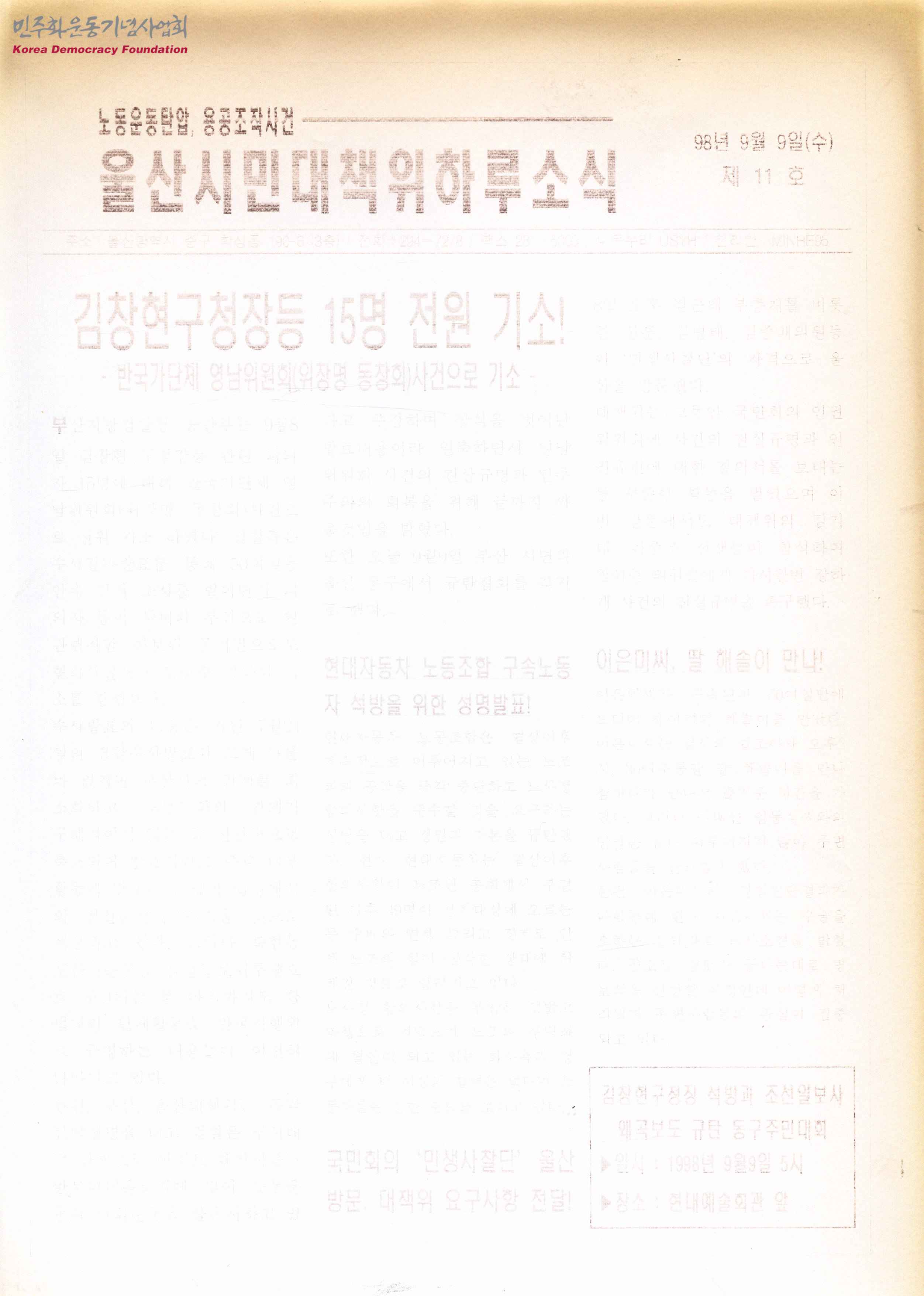 노동운동탄압, 용공조작사건 - 울산시민대책위하루소식 제11호