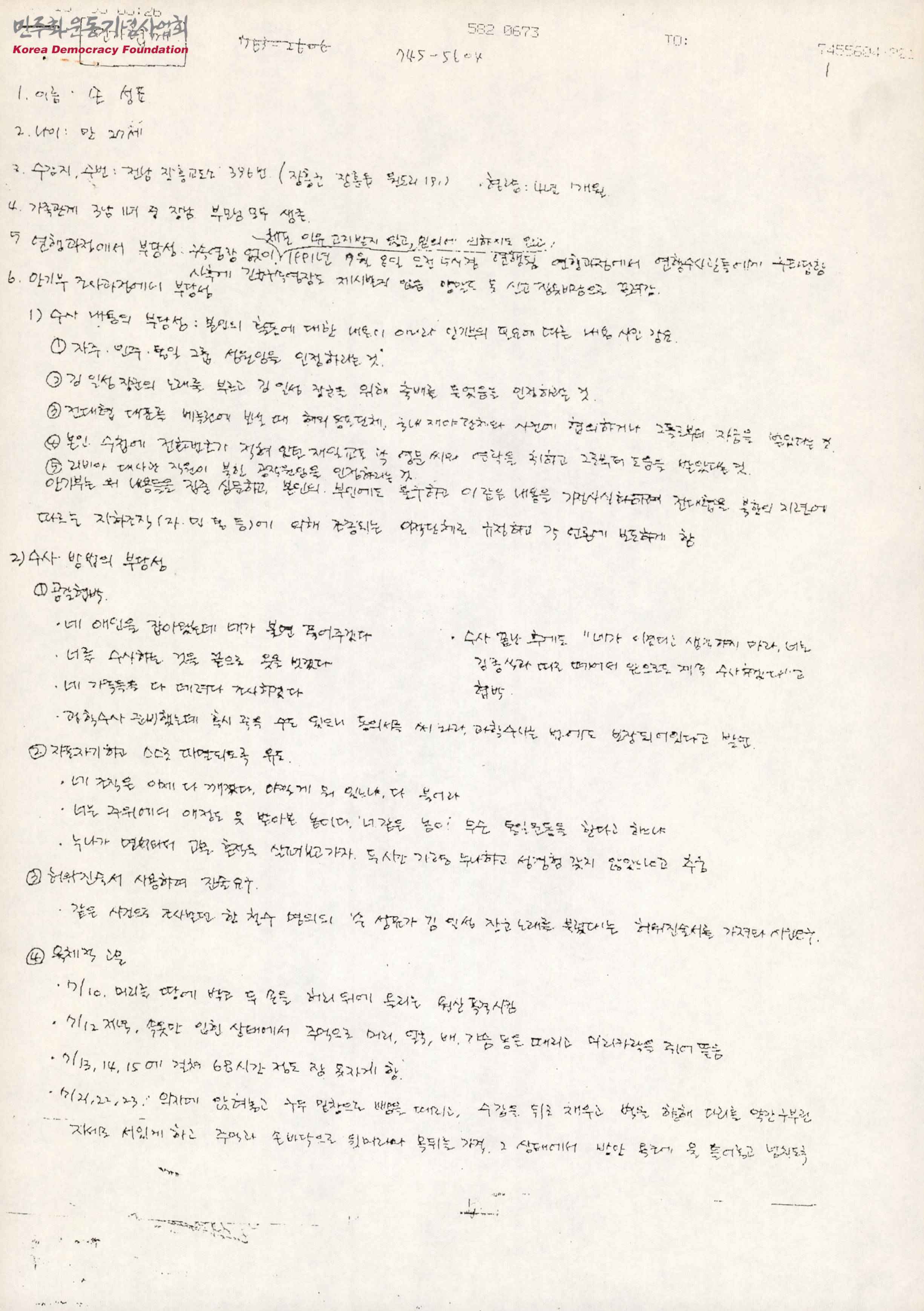 - 손성훈이 자신이 겪은 연행과 고문수사의 부당성에 대해 적은 편지로 목차는 다음과 같음 1. 이름 2. 나이 3. 수감지, 수번 4. 가족관계 5. 연행과정에서의 부당성 6. 안기부 조사과정에서 부당성 7. 검찰 수사과정에서의 부당성 8. 기소내용 9. 재판에서 본인의 주장 10. 교도소 생활에서 문제점