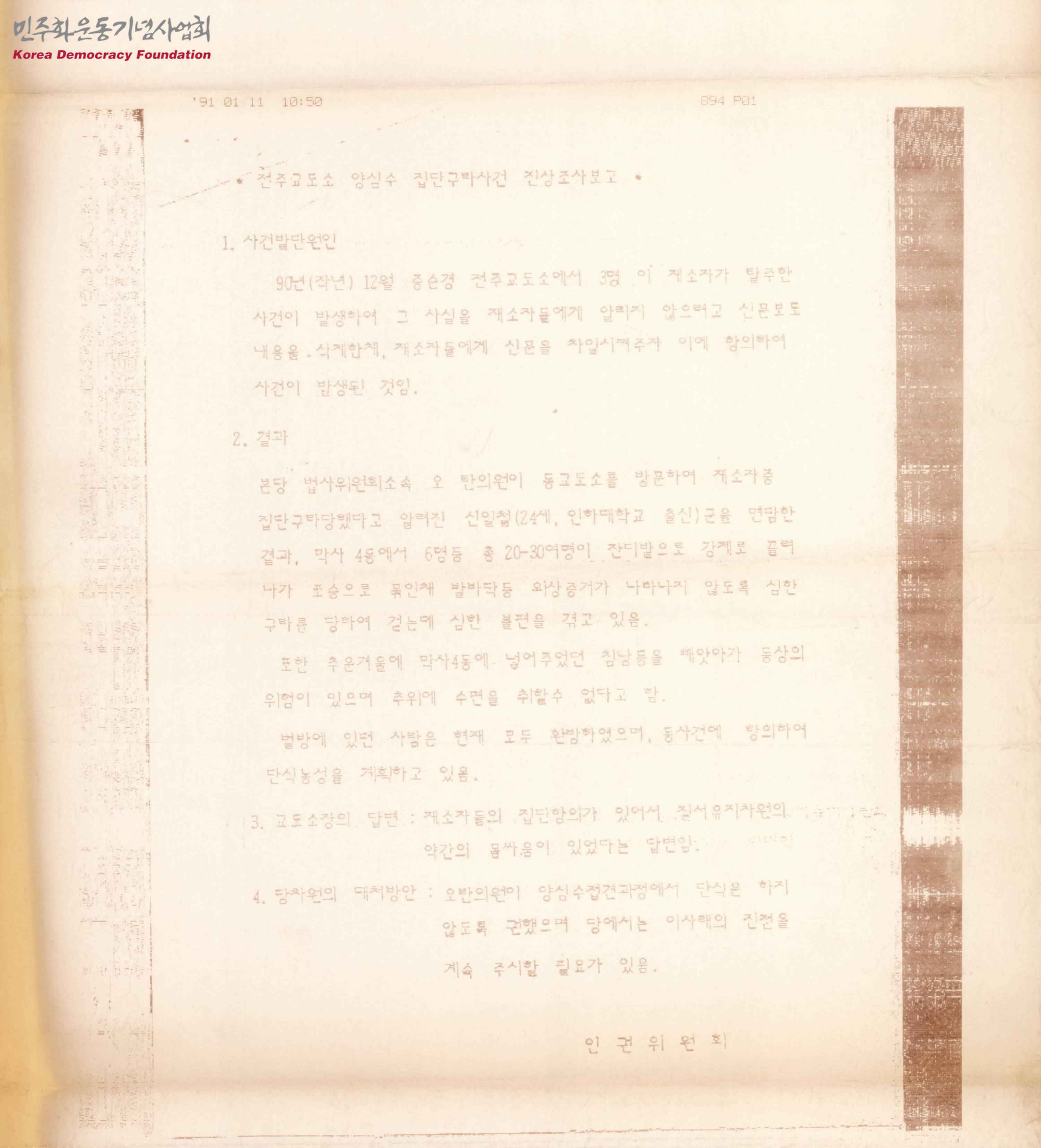 [전주교도소 양심수 집단구타 사건 관련 문서 모음]