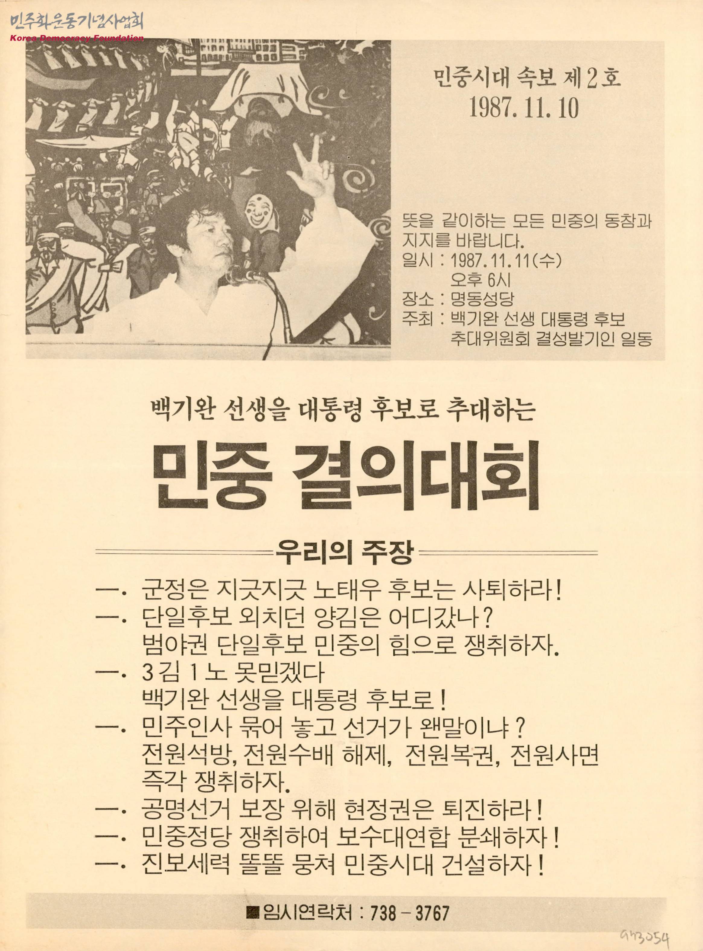 민중시대 속보 제2호 백기완선생을 대통령 후보로 추대하는 민중 결의대회