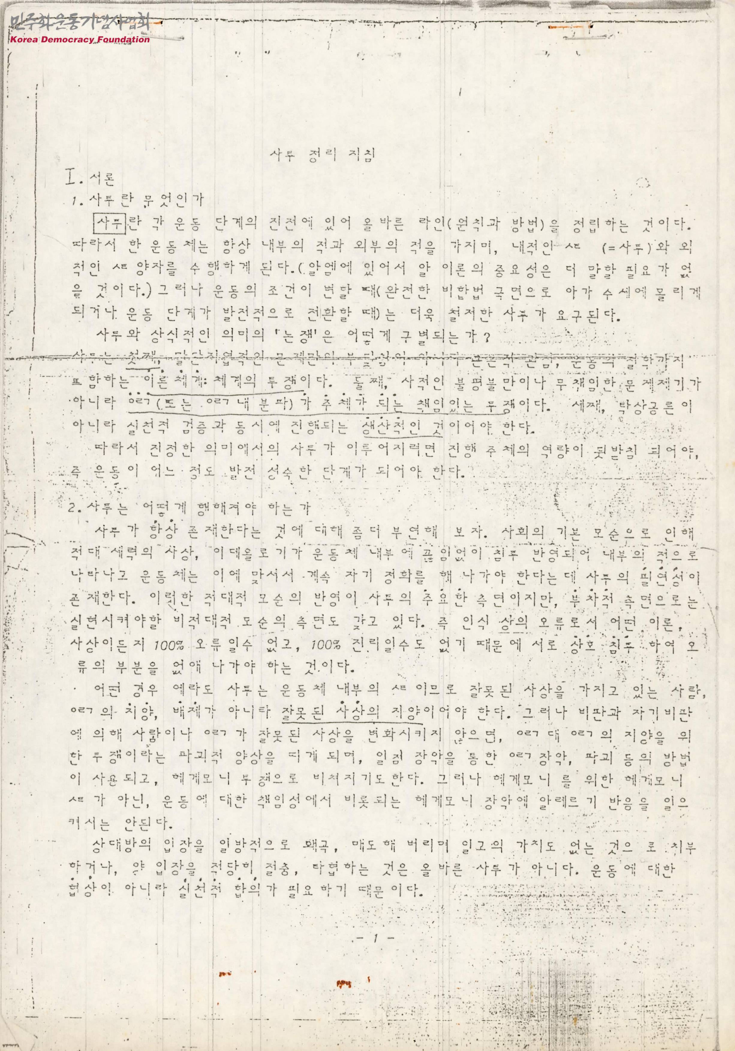 - 1984년과 1985년에 걸쳐 미상의 학교 내에서 일어난 학생운동을 바라보는 두 가지 견해를 정리한 글