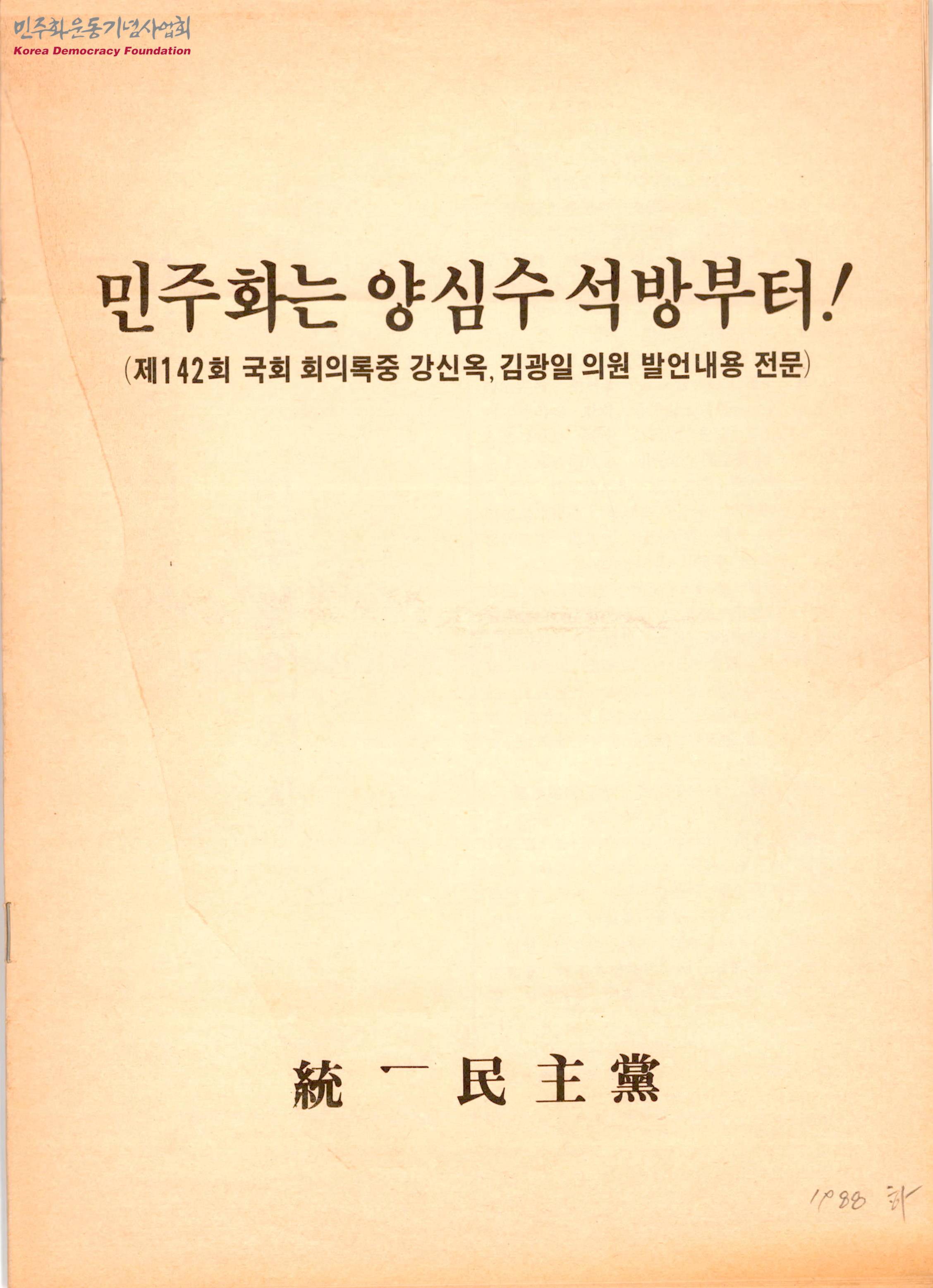 민주화는 양심수석방부터 -제142회 국회 회의록 중 강신옥, 김광일 의원 발언내용 전문-