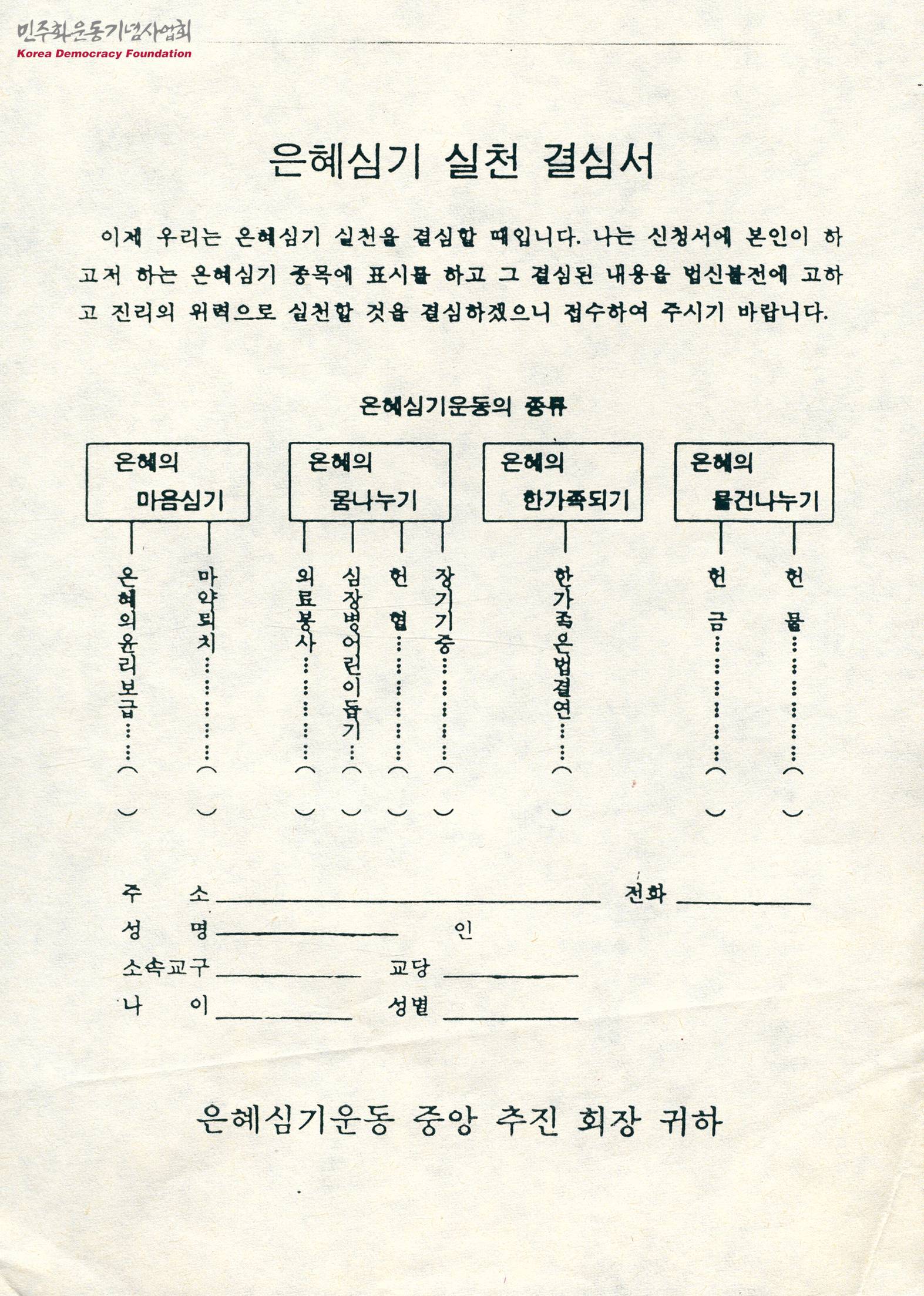 은혜심기 실천 결심서