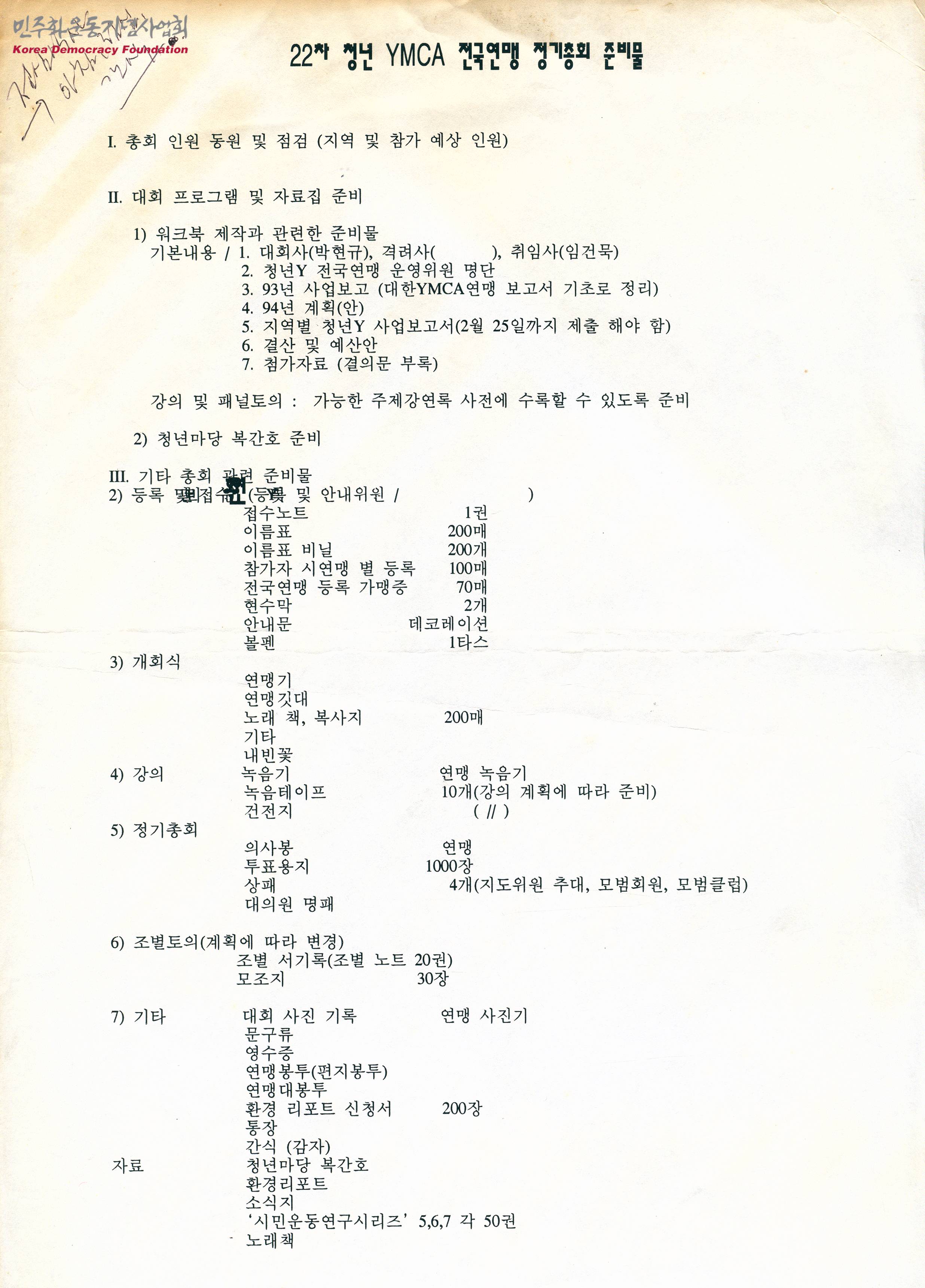 22차 청년 YMCA 전국연맹 정기총회 준비물