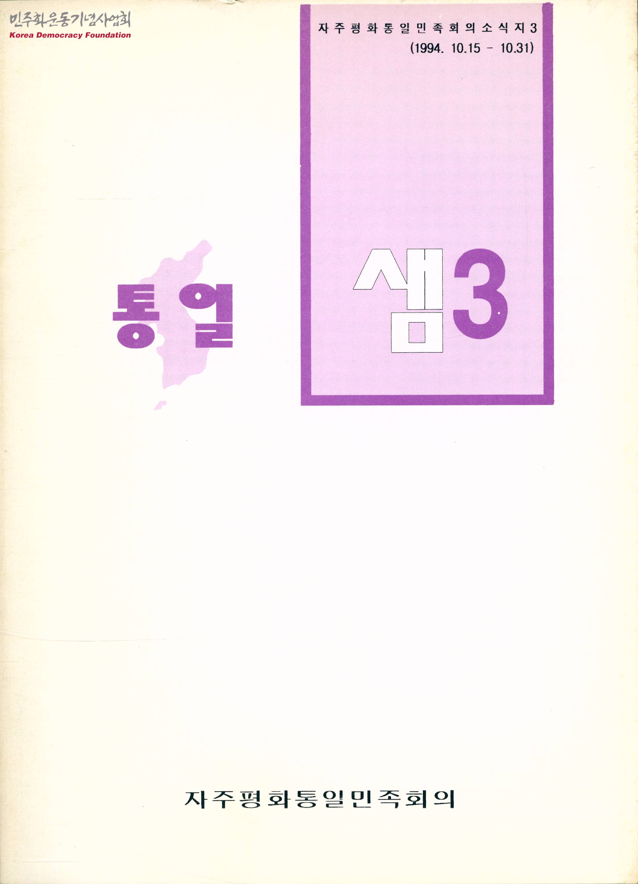 - 북한의 조국통일민주주의 전선이 남한의 정당과 사회단체 소속 개인들에게 단군릉 준공식 초청장을 보내왔다는 소식과 국제연대회의에서 발표한 한반도의 평화와 통일을 위한 합의문의 내용 등이 실려있는 정간물로 아래와 같은 목차로 구성되어 있음 -권두언 -본부소식1 -본부소식2 -본부소식3 -참가단체소식1 -참가단체소식2 -참가단체소식3 -소개 -역사속의 통일이야기 -특집기획 -시사해설 -샘 그림터 -샘 정보