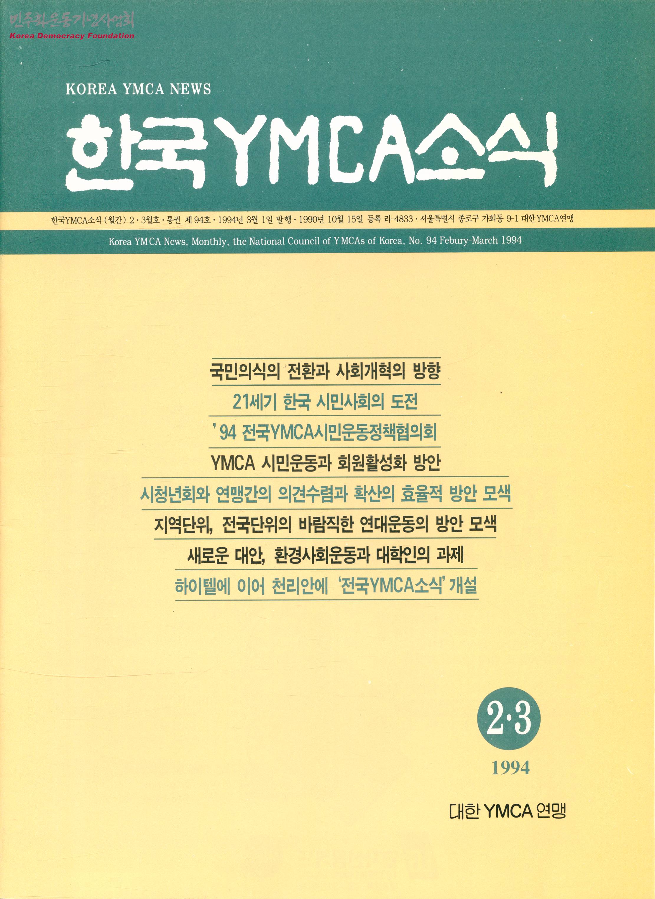한국YMCA소식 1994년 2·3월호
