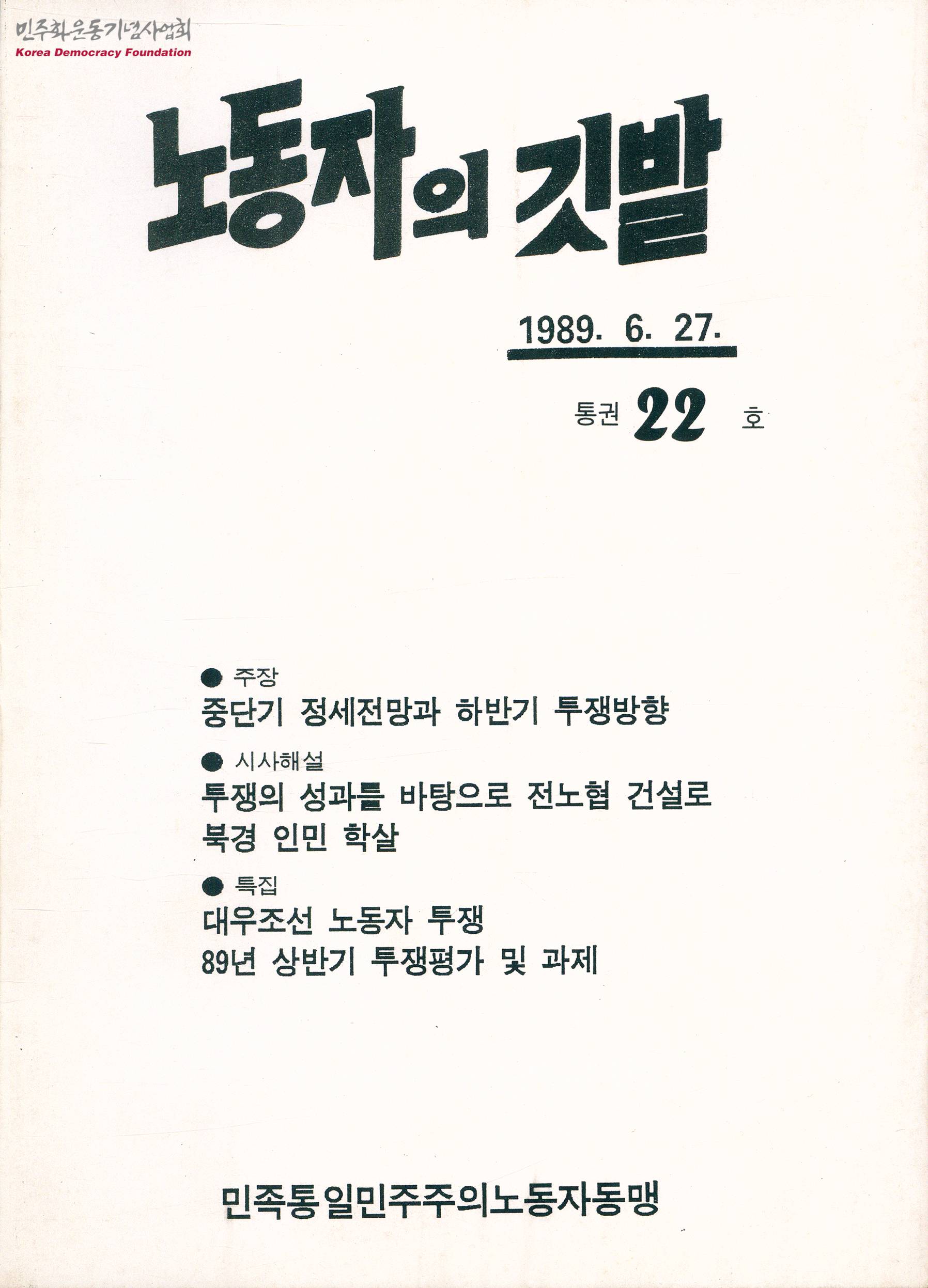 - 상반기 정세 전개의 고찰과 경제전망, 국제관계와 남북관계 등의 내용이 수록된 자료집으로 목차는 다음과 같음 - 주장 계급적 진지를 강화하고 노태우 정권을 전면적으로 포위하자 - 칼럼 김영삼의 화려한 해외나들이 - 시사해설 상반기 투쟁의 성과를 바탕으로 전노협 건설로 매진하자, 중국, 북경인민학살과 사회주의 개혁의 험로, 연대노조와 폴란드 총선, 좌초한 평양축전 참가투쟁 - 특집Ⅰ 대우조선 노동자 투쟁 - 특집Ⅱ 89년 상반기 투쟁평가 및 과제 - 기획 제3세계 민중운동(Ⅲ)