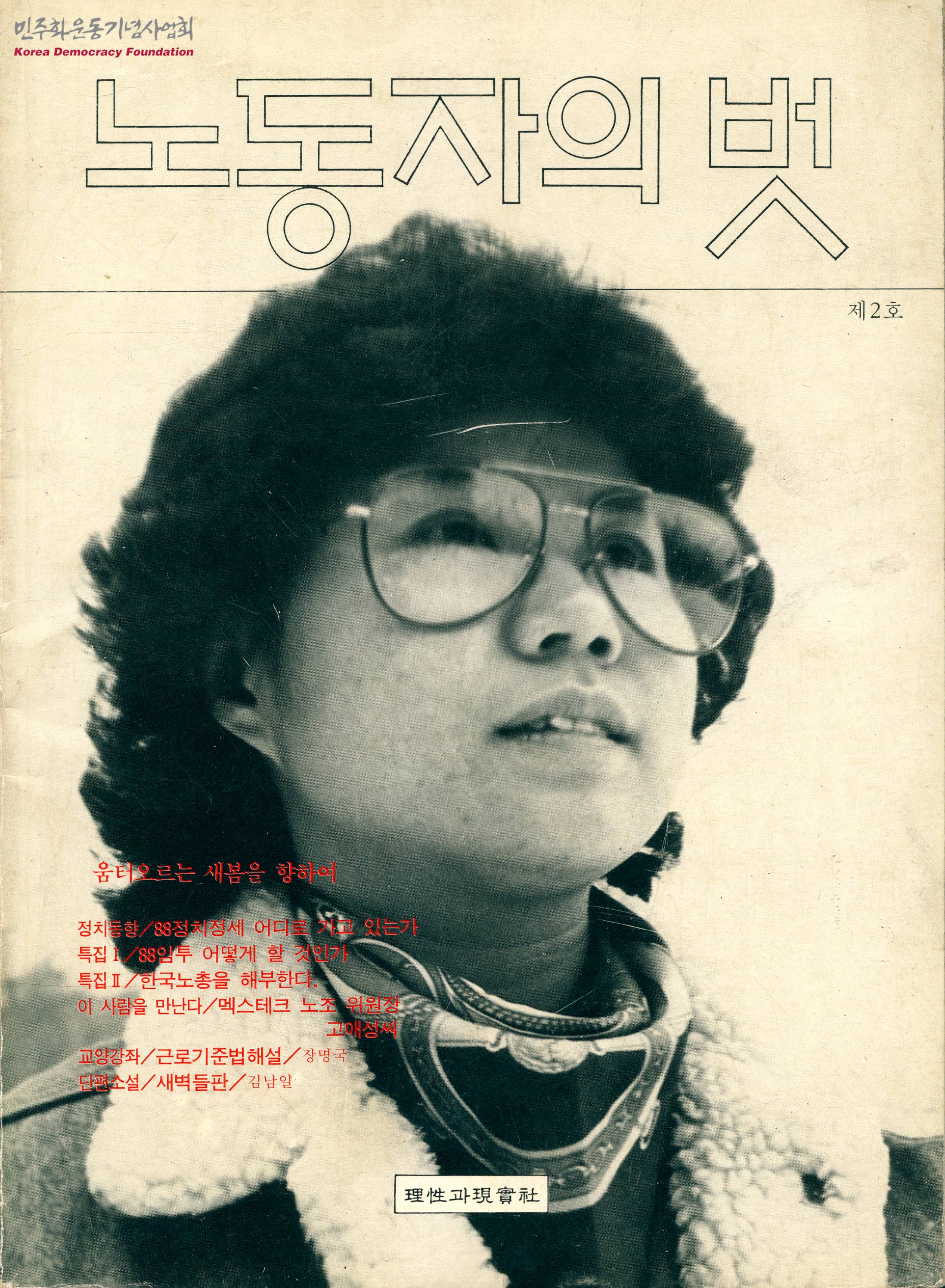 - 88년 임금투쟁의 의미와 최저임금제에 대한 고찰하는 내용, 한국노총에 대한 내용이 수록된 자료집으로 목차는 다음과 같음 - 권두언 움터오르는 새봄을 항하여 - 화보 - 정치동향 '88정치정세 어디로 가고 있는가 - 경제동향 한국경제의 동향을 알아본다 - 노동운동동향 87년 하반기 노동운동 동향 - 특집Ⅰ 88임투, 어떻게 할 것인가 - 좌담 대통령 선거와 임투에 대하여 - 망치소리 진정한 민주화합을 위하여 - 노동운동단체 구로 노동상담소를 찾아서 - 특집Ⅱ 한국노총을 해부한다 - 뉴스의 현장 시사초점, 노동, 농민, 도시빈민 - 만화 - 신규노조 탐방 - 이 사람을 만난다 멕스테크 노조 위원장 고애성 - 노동상담 부정해고 어떻게 해야 하나 - 시 - 어떻게 시를 쓸 것인가 - 수필 - 교양강좌 서평, 건강상담 - 단편소설 - 노동자 투쟁일지 - 편집후기