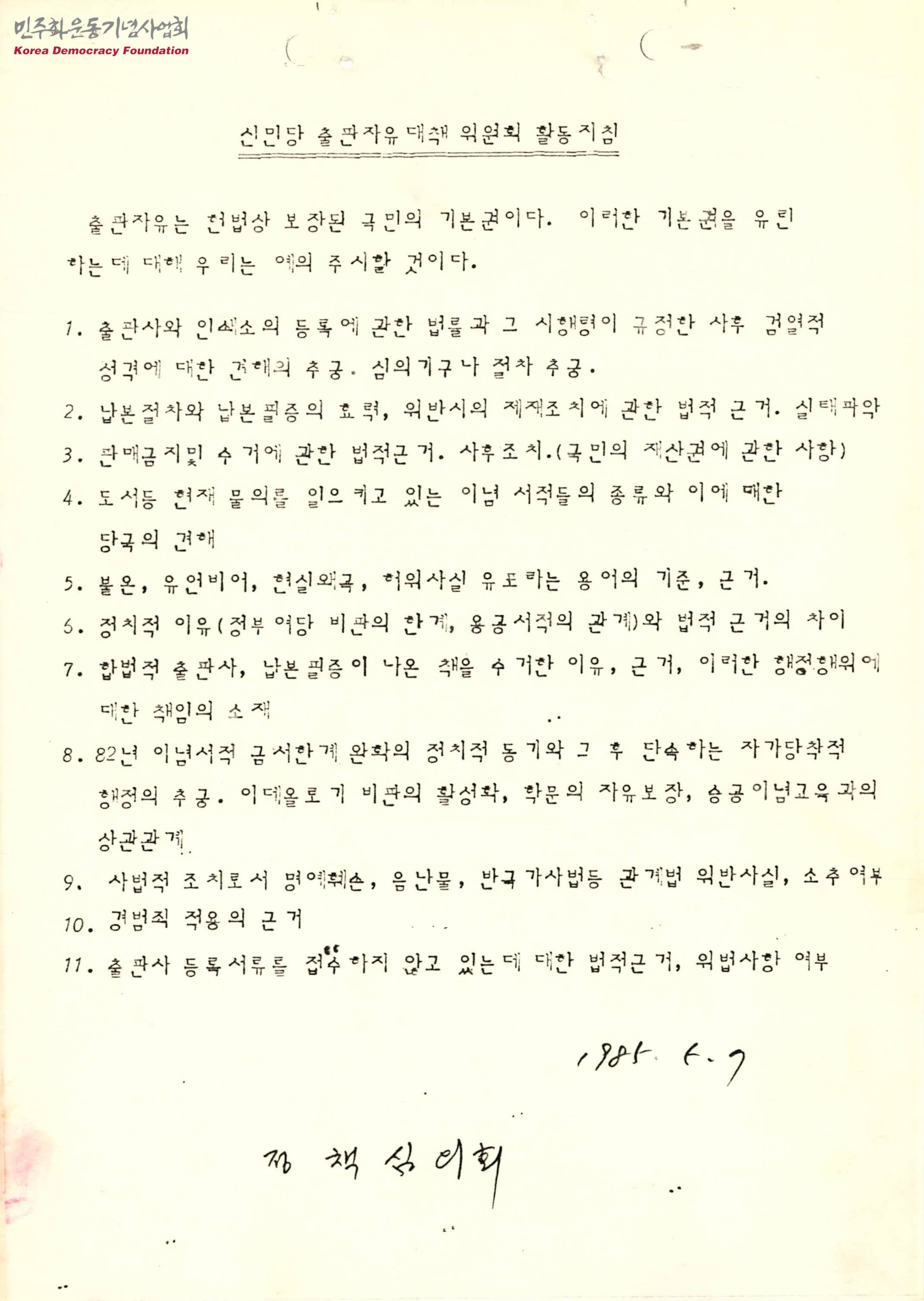[신민당 출판자유대책 위원회 관련 문서 모음]