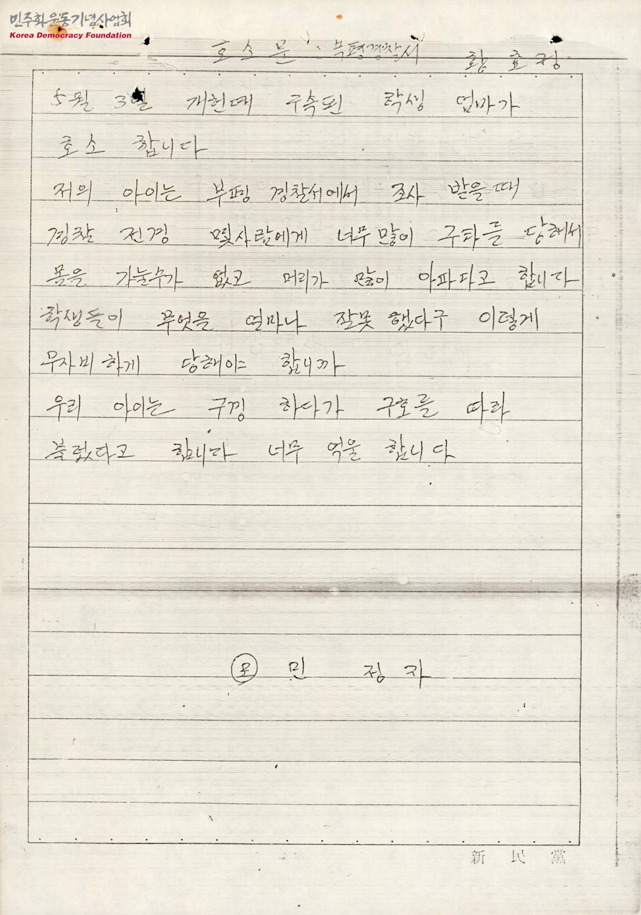 - 5.3사태 이후 경찰이 자행한 고문 등의 내용이 수록된 탄원서 모음