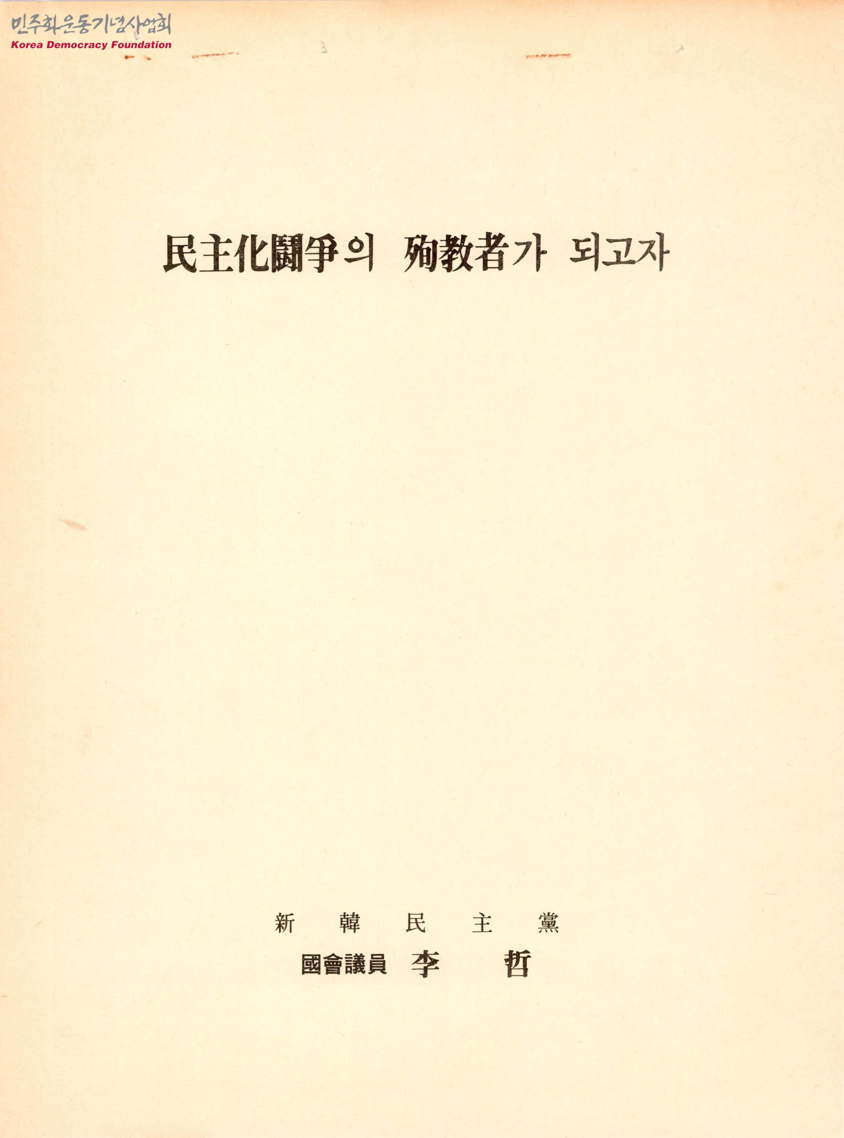 - 신한민주당 소속의원 7인을 기소한 현정권의 행태는 그들의 폭력성과 기만성을 스스로 폭로하는 것이며, 국민들의 열화와 같은 민주화요구에 폭력통치, 공작정치로 맞서고 있다는 내용, 본인은 어떠한 시기와 죽음의 공포가 있더라도 끝까지 싸워 민주단열에서 장열히 전사할 것임을 다짐하는 내용 등이 수록된 문서