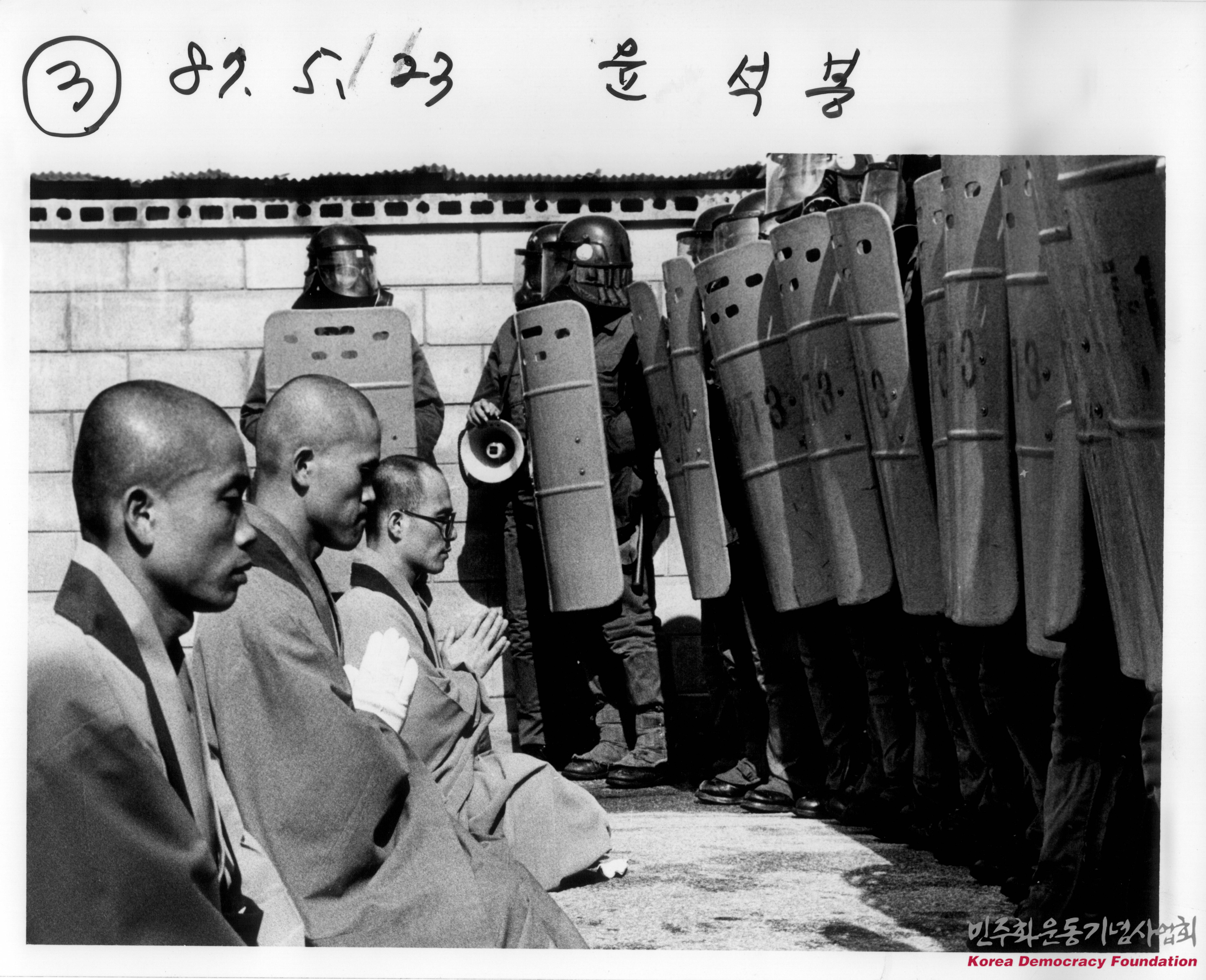- 민주회복을 기원하는 스님 58명이 정부에 대통령 선거 국민직선제를 요구하며 법회하는 모습을 촬영한 사진