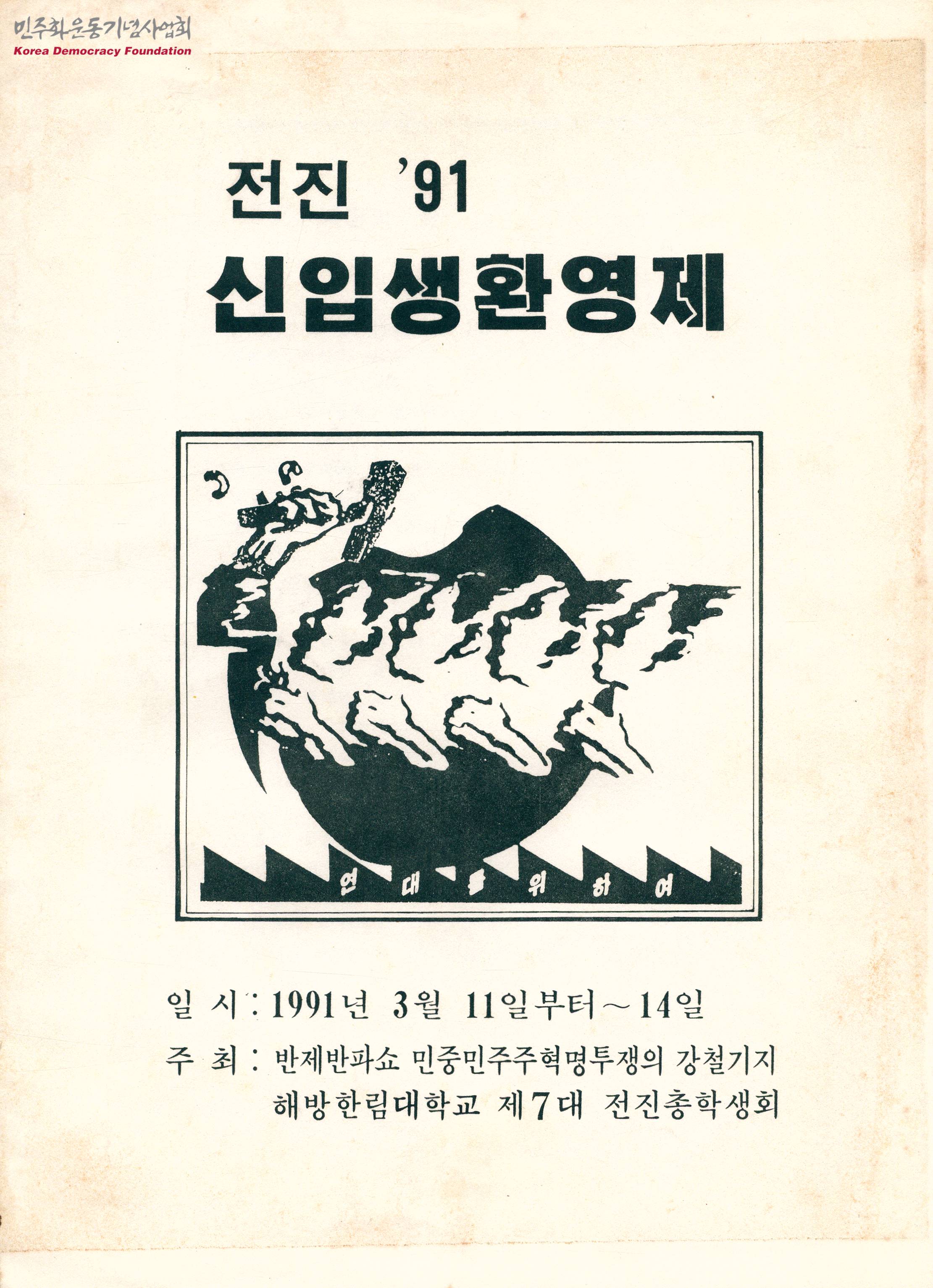 - 신입생 환영행사의 일정과 프로그램 등이 수록된 자료집으로 목차는 다음과 같음 - 피땀의 꽃 - 신입생 환영회를 준비하며 - 신입생 환영제 일정소개 - 동아리 자체공연 소개 - 학술행사 - 상시행사 - 영화제를 개최하며 - 작은 영화란 - 노래로 하나되어