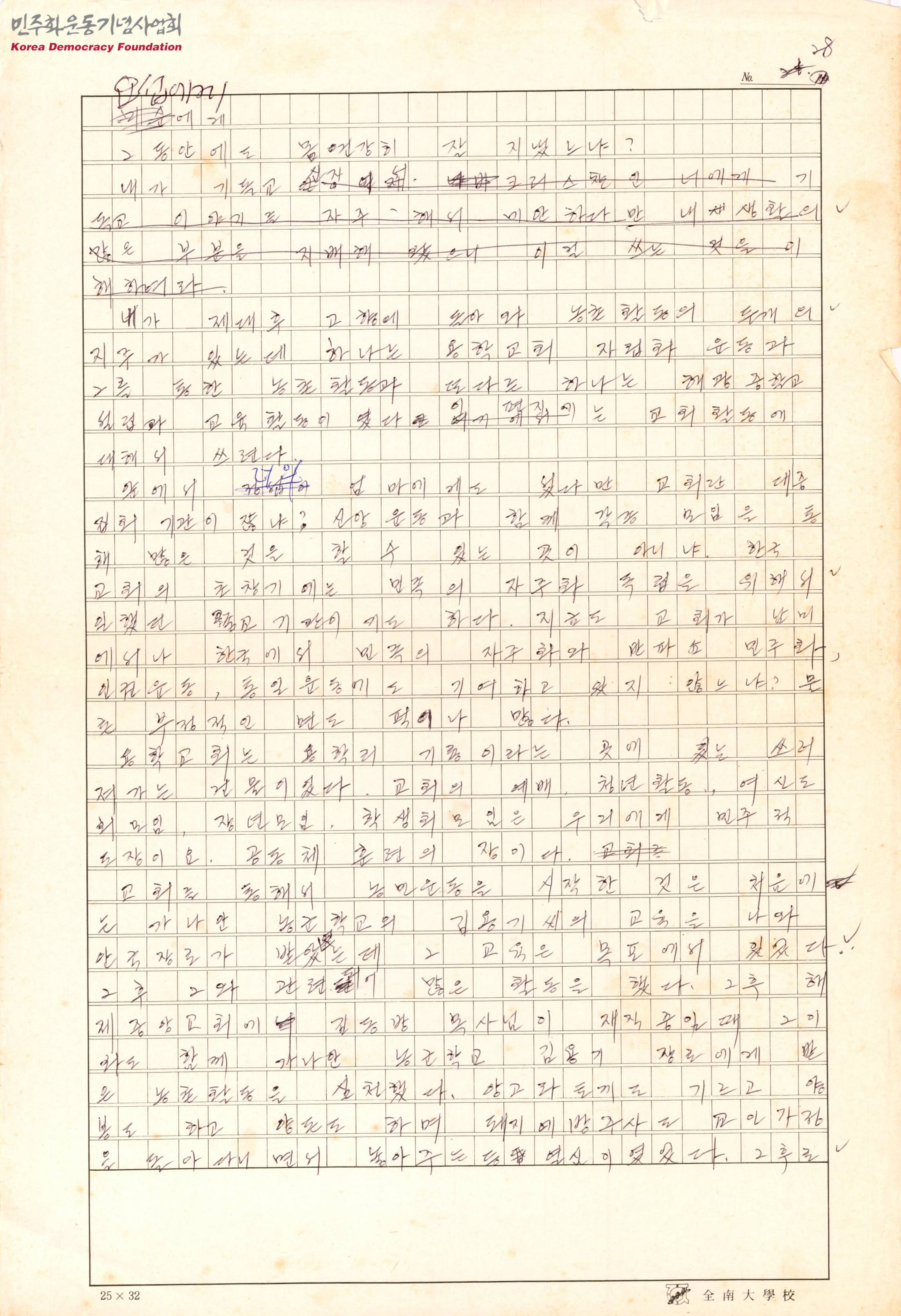- 제대 후 진행한 용학교회 자립화 운동에 대한 내용, 교회를 통해서 농민운동을 시작한 이유 등의 내용이 수록된 편지