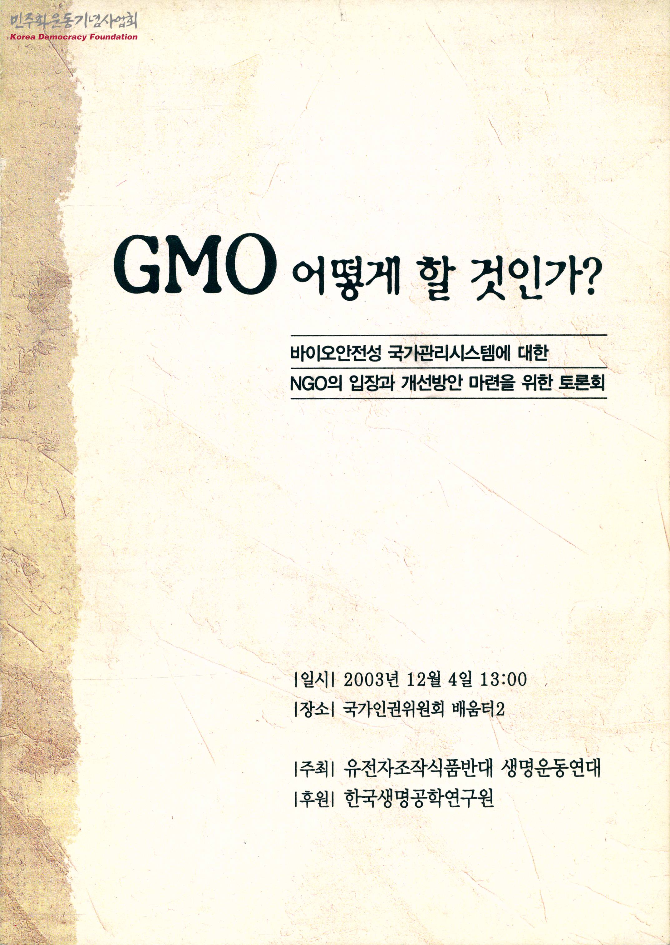 - 바이오안전성 국가관리시스템에 대한 NGO의 입장과 개선방안 마련을 위한 토론회의 내용을 정리한 문서로 목차는 다음과 같음 - GMO, 어떻게 볼 것인가? - GMO의 현황과 문제점 - GMO의 잠재적 위험성 통제를 위한 법정책