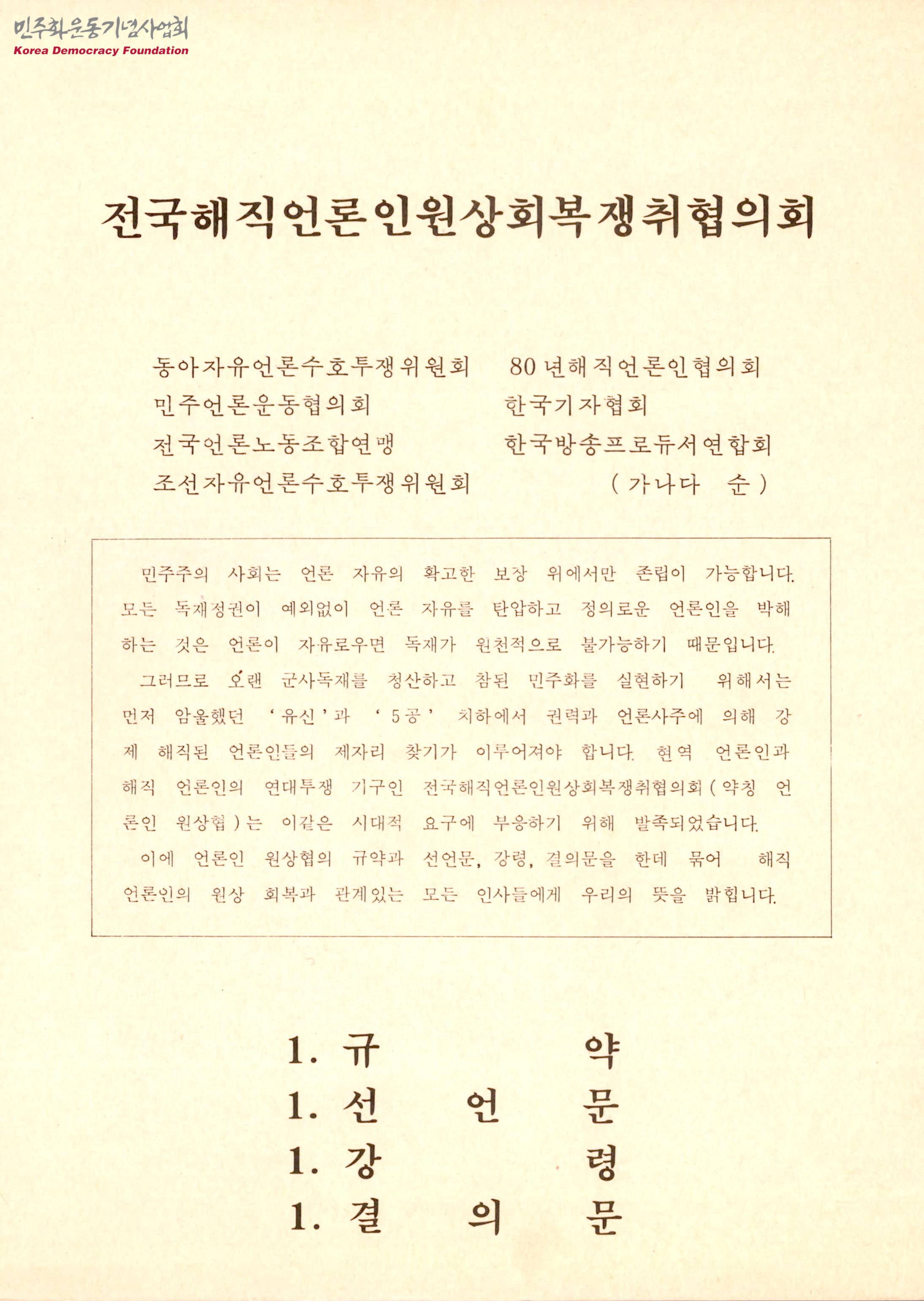 - 전국해직언론인원상회복쟁취협의회