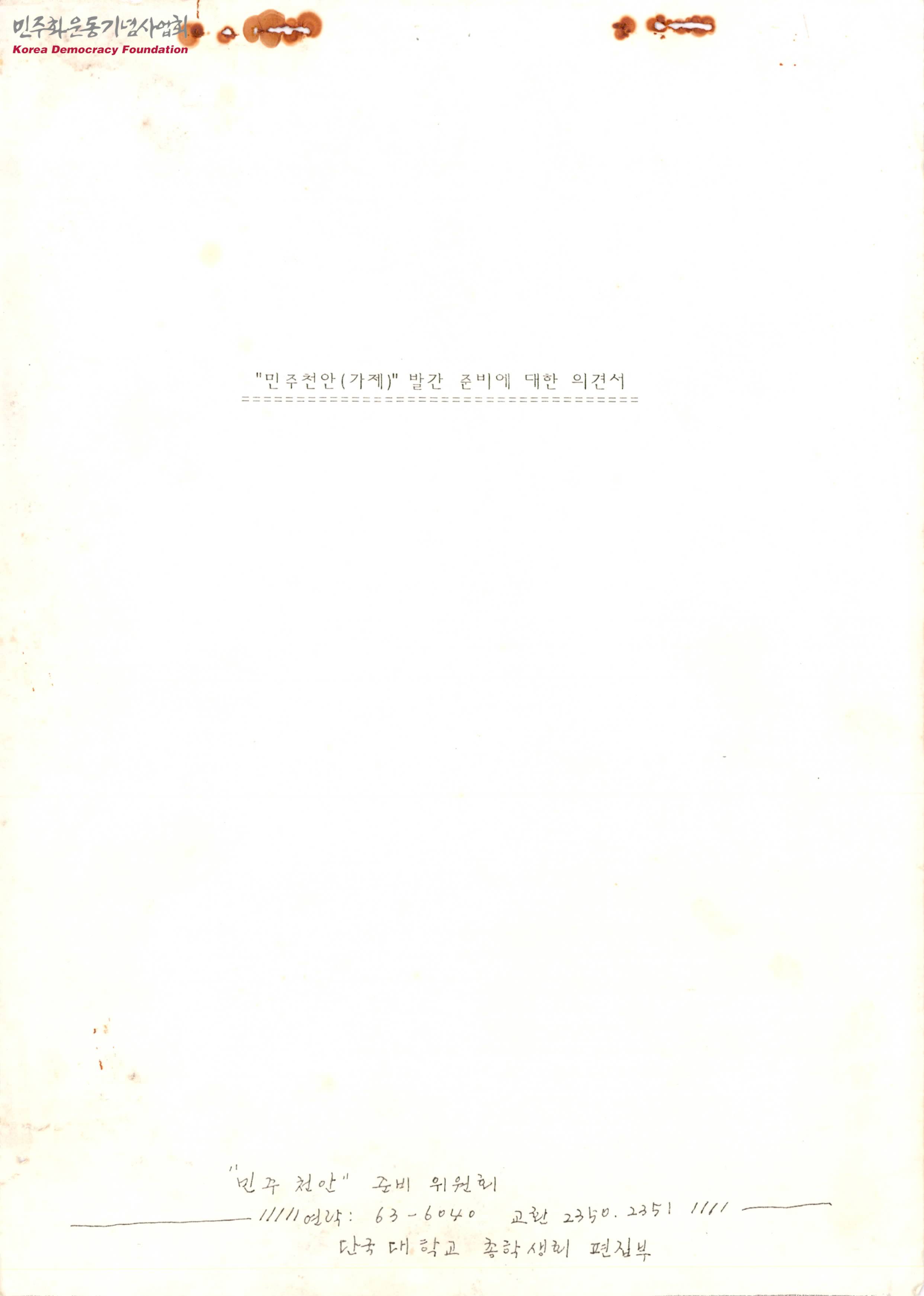 민주천안(가제)발간 준비에 대한 의견서