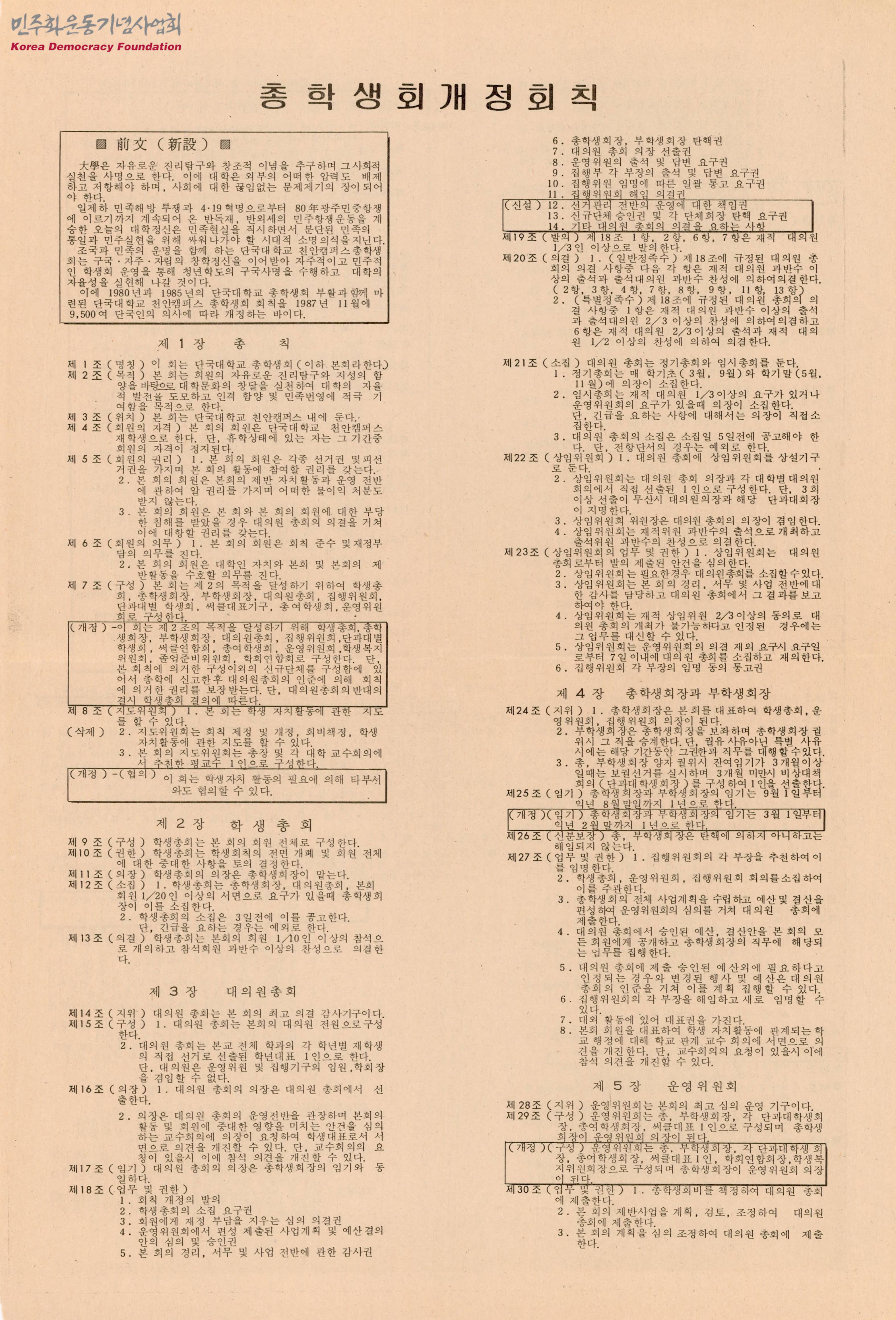 - 단국대학교 총학생회의 개정된 회칙 전문이 적힌 문서