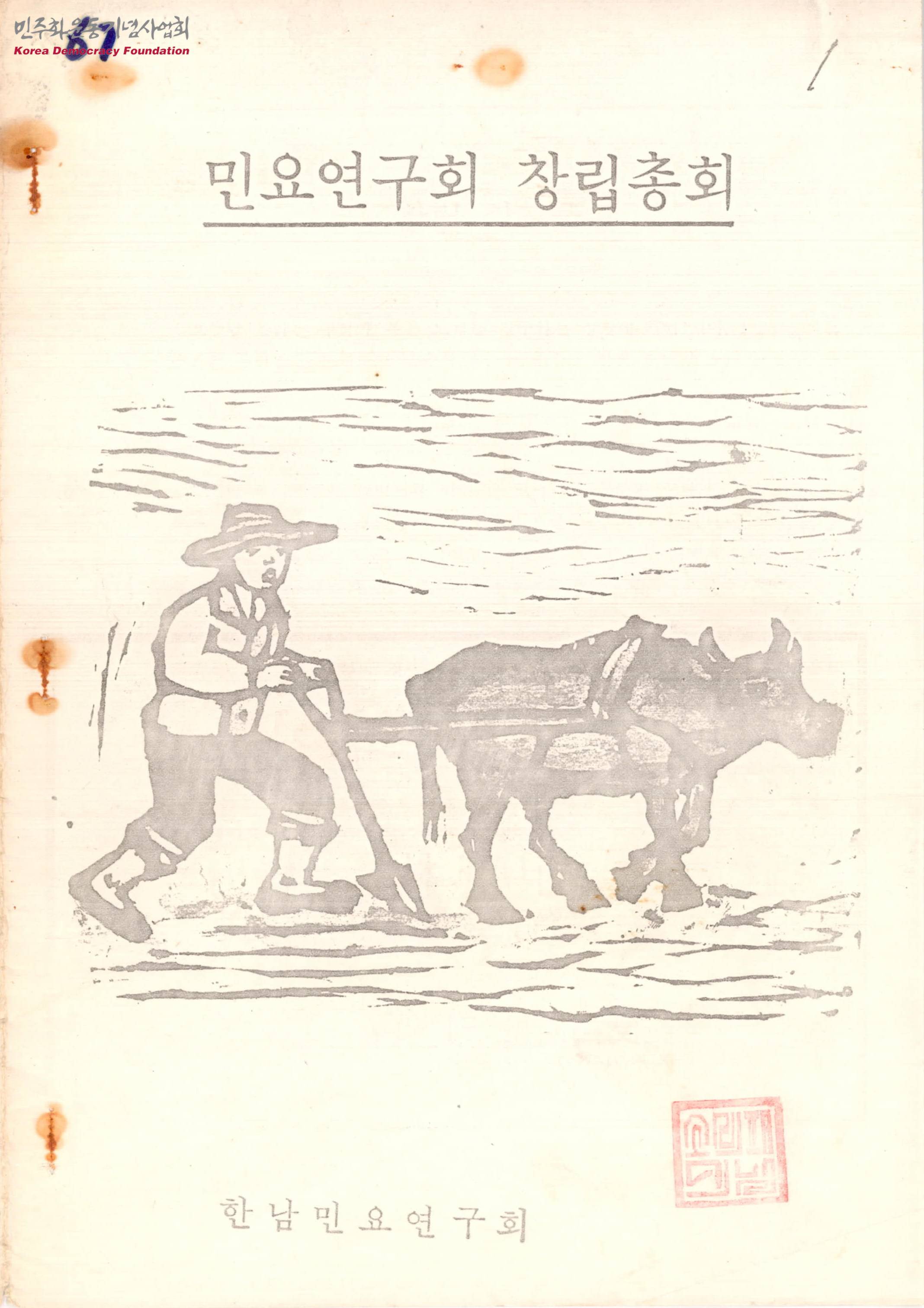 - 대중의 참여로 함께하는 민요부흥운동을 전개한다는 내용의 창립선언문, 사업내용, 민요연구회 정관초안, 발기인 명단이 수록된 창립총회 자료집
