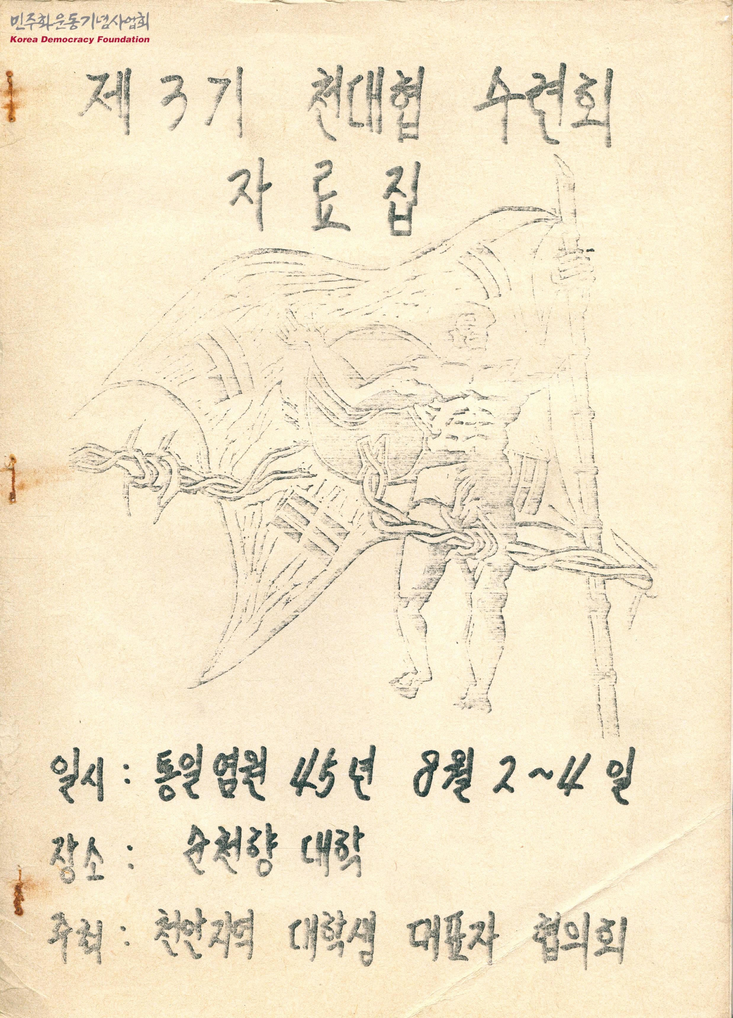 - 천안지역 각 학교 소개와 상반기 사업평가, 연대 사업에 대한 평가 등의 내용이 수록된 수련회 자료집으로 목차는 다음과 같음 - 서시 - 차례 - 의장님 인사말 - 각 국 사업평가서 - 각 학교소개 및 상반기 사업평가서 - 조직, 투쟁사업 총평가 * 연대 사업국 평가 - 회칙