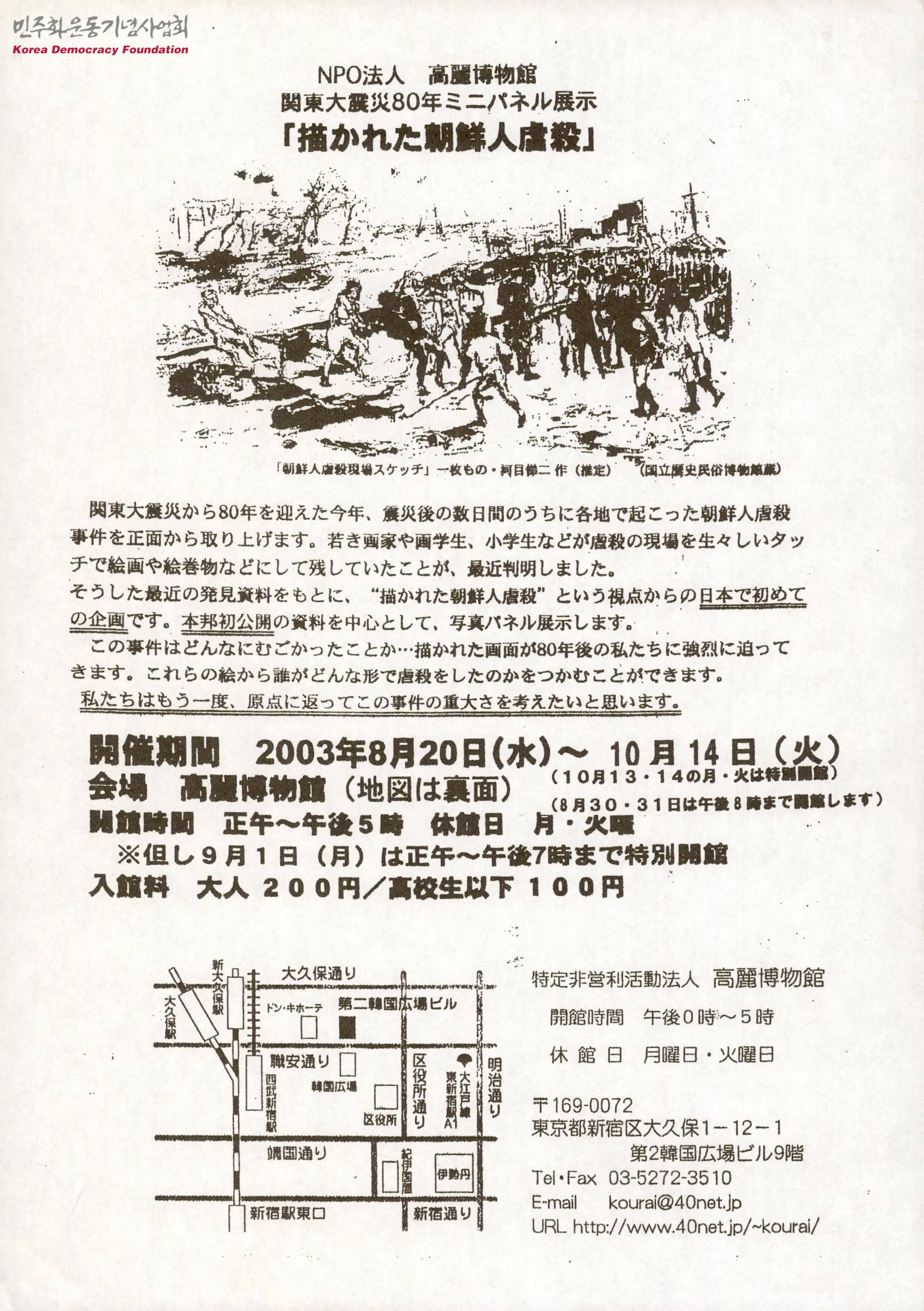 NPO법인 고려박물관 관동 대지진 80년 미니 패널 전시 - 그림으로 그려진 조선인 학살