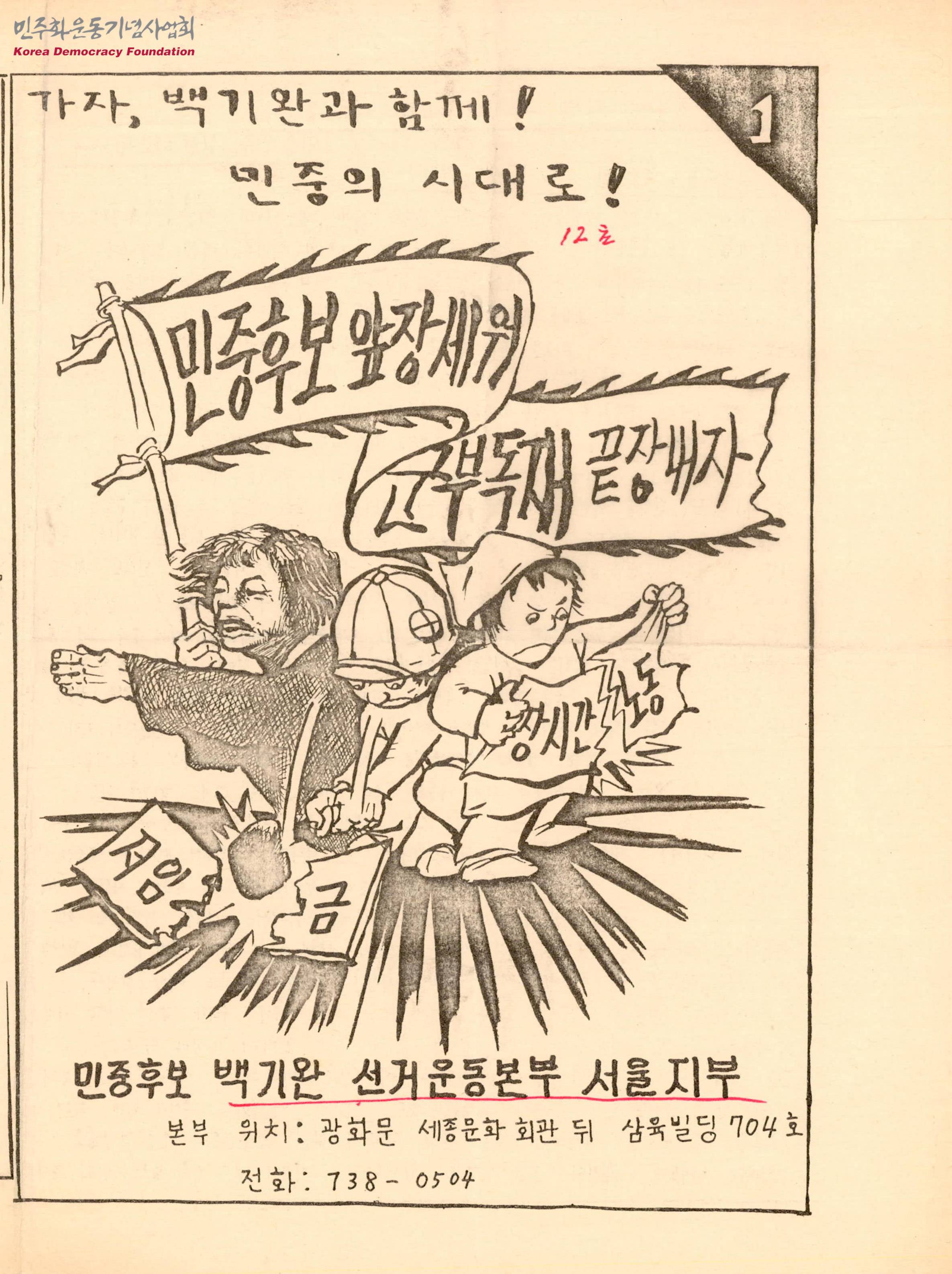 - 영등포·구로지역 노동자들에게 민중후보와 민중정당을 적극 지지해, 이를 중심으로 민주연립정부를 쟁취해냄으로 완전한 민중의 민주주의를 실현할 수 있도록 함께 싸울 것을 독려하는 내용 등이 실린 유인물