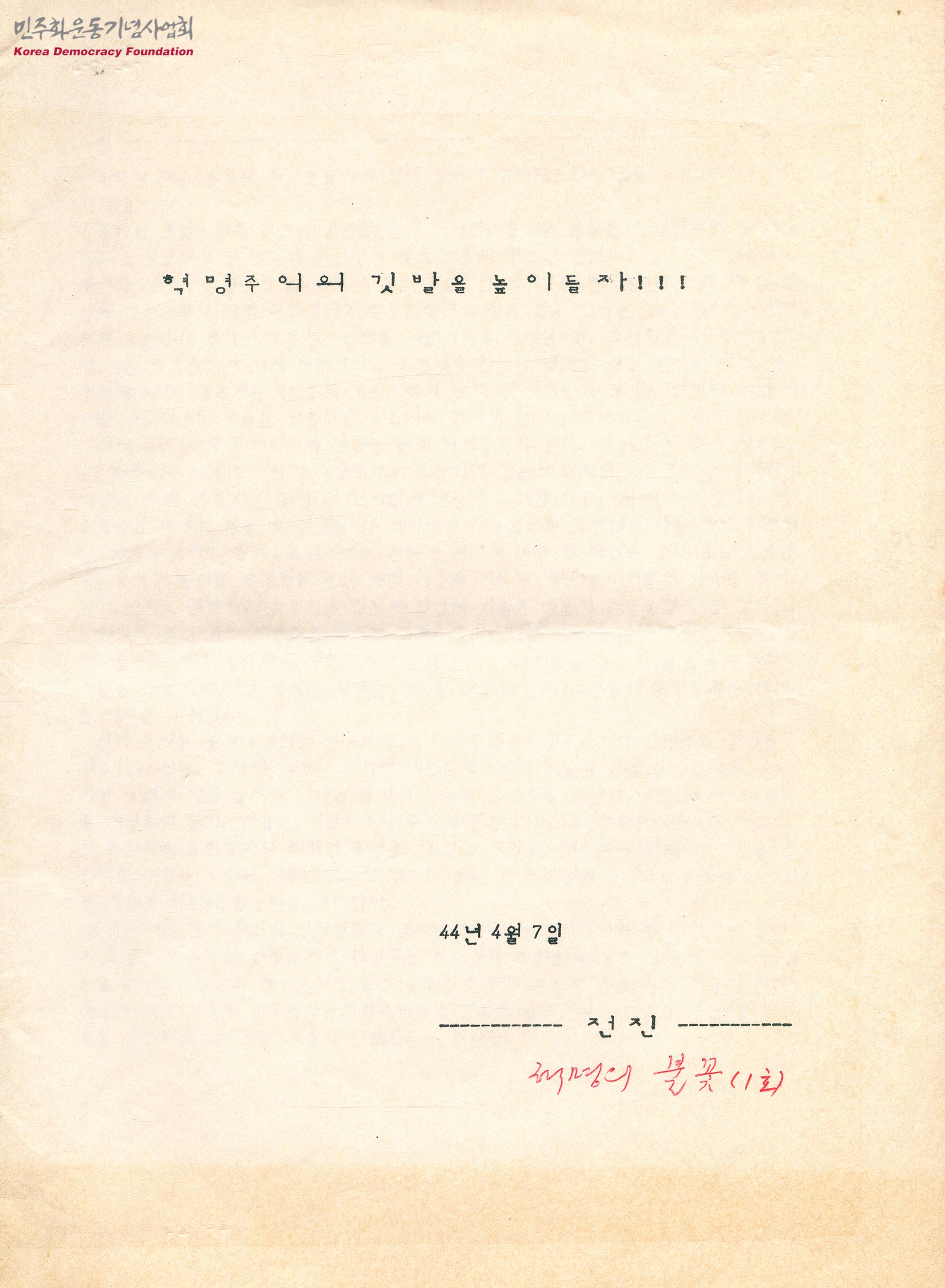 - 혁명운동가들이 처한 어려운 상황을 제시하고 앞으로의 전술을 제시한 내용이 수록된 정간물로 주요 내용은 다음과 같음 -서 -현정세 -전술의 구체화를 위하여 -총선시기 투쟁 전술 -조직적 과제