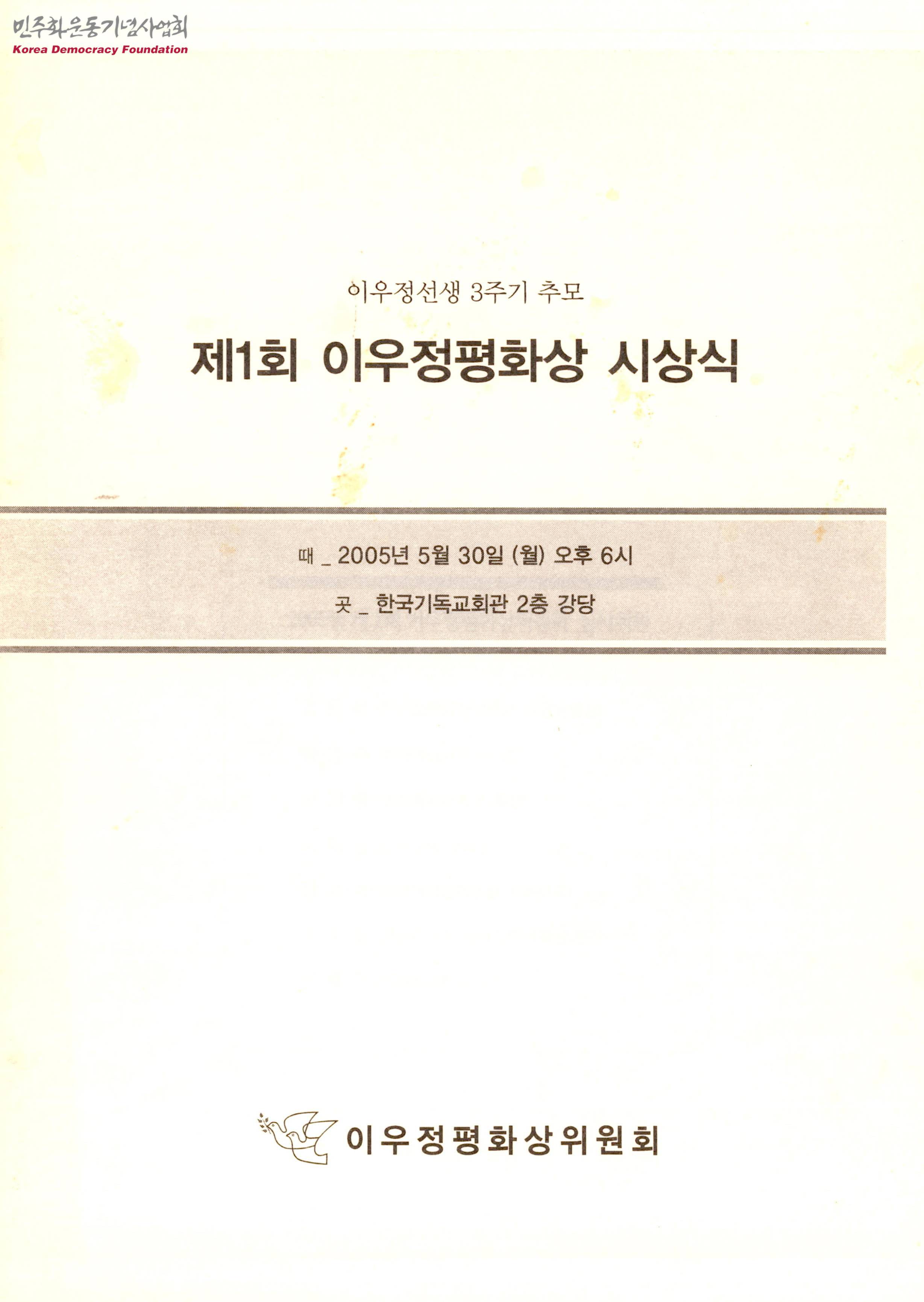 - 여성평화운동이 탄생하는 데에 크게 기여하신 이우정 선생의 뜻을 따라 만들어진 평화상은 단지 '전쟁과 폭력이 없는 상태'를 지향하는 '소극적 평화'에서 한 걸음 나아가 여성의 힘으로 군사주의, 구조적 폭력에 저항하는 '적극적 평화'를 실현하고자 노력하고 있다는 내용이 수록된 문서