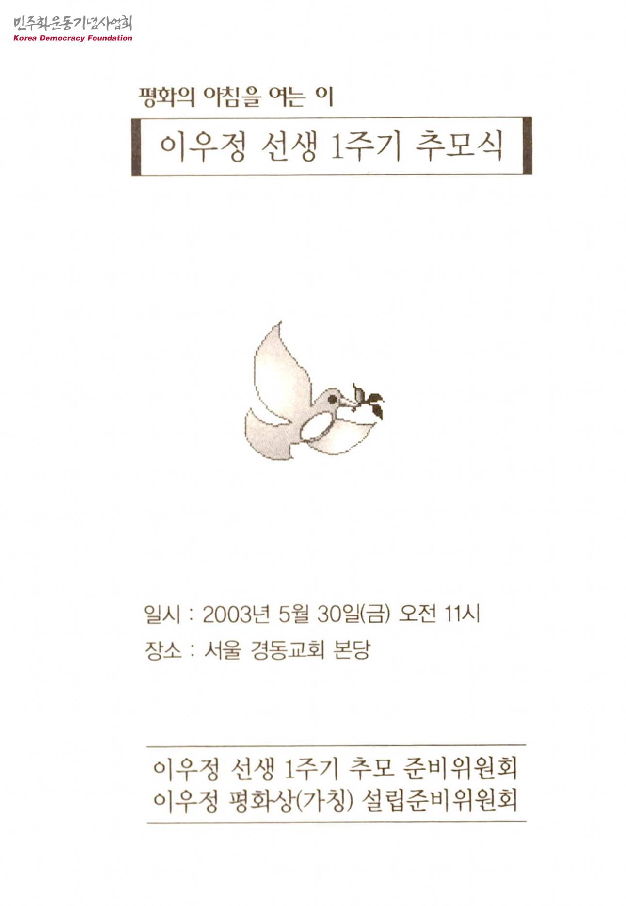 - 이우정 선생 1주기 추모 준비위원회
