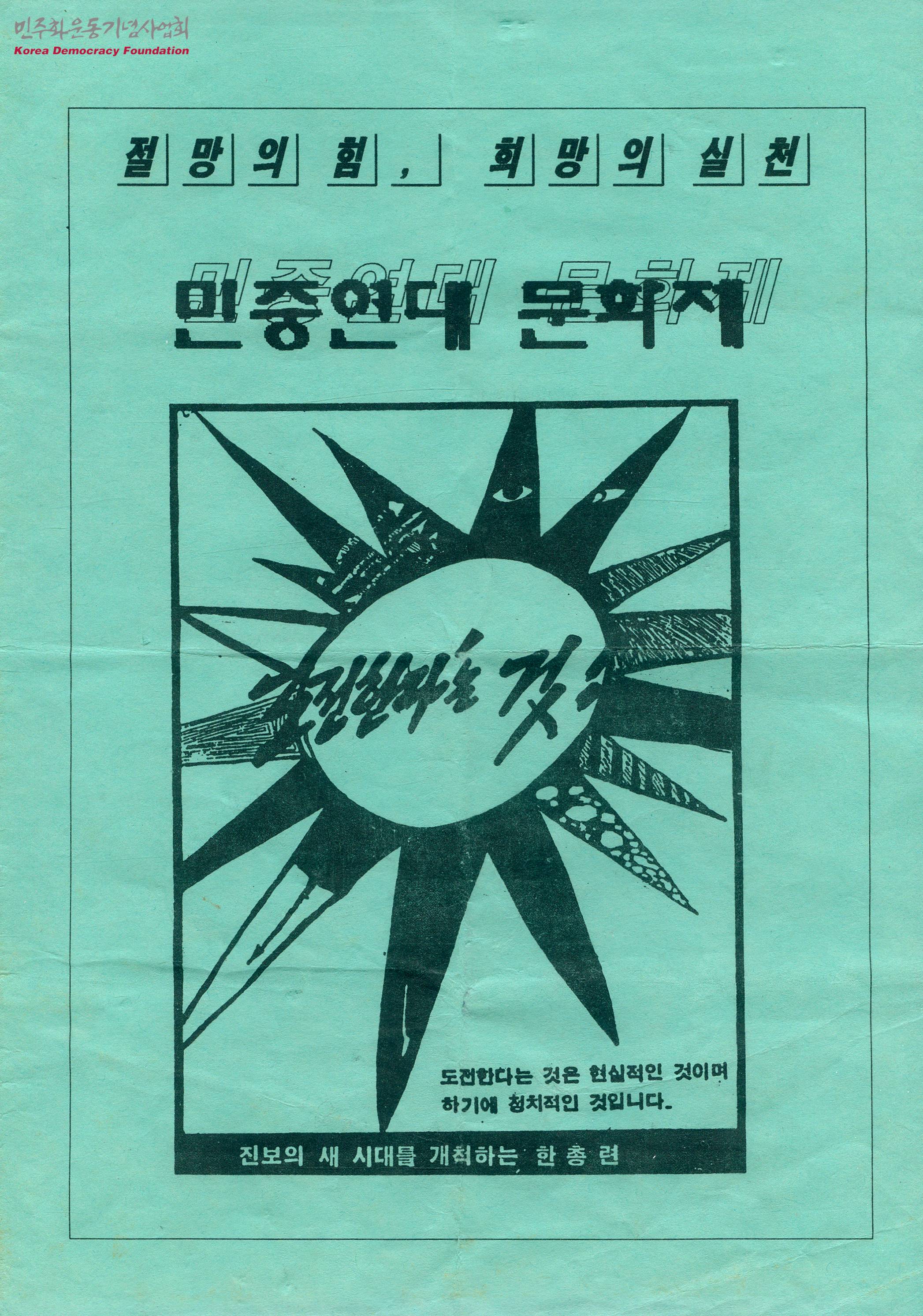 - 민중연대 문화제의 일시, 장소, 순서, 민중의 거리 행사 일정, 문예강연회, 공청회, 상설공연의 일정이 수록된 문서