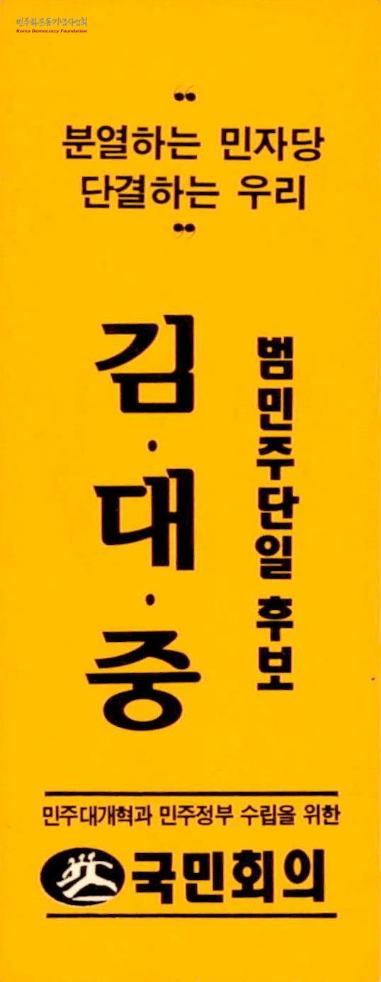 - 민주주의를 소망하는 사람들과 재야 세력, 민주당이 손을 굳게 잡았고 여당이 분열했으니 국민의 승리가 앞당겨지니 범민주 단일후보로서 김대중을 투표해달라는 내용의 리플릿