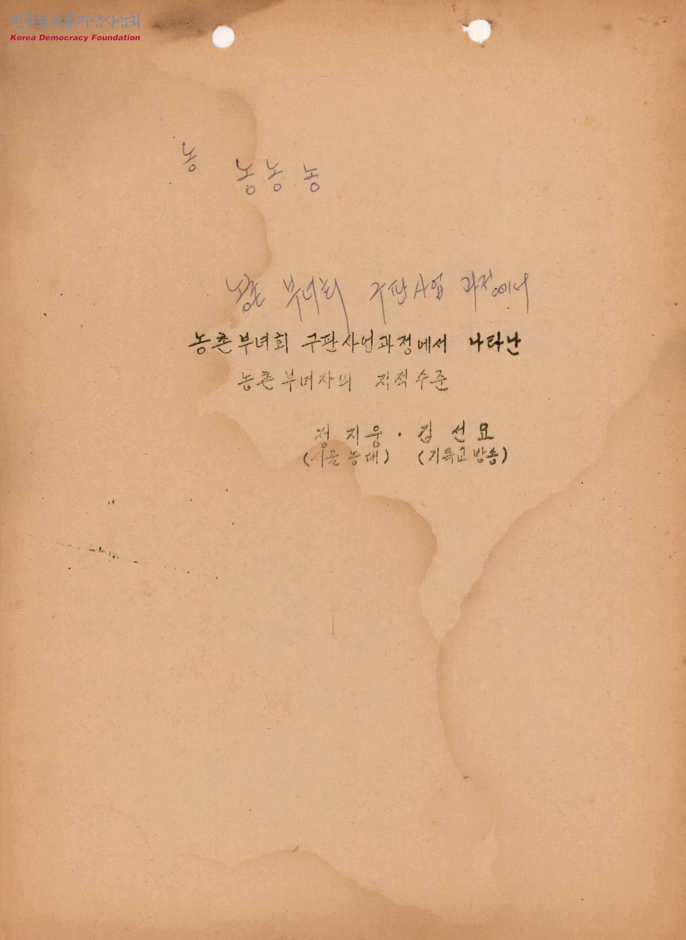 농촌부녀회 구판사업 과정에서 나타난 농촌 부녀자의 지적수준