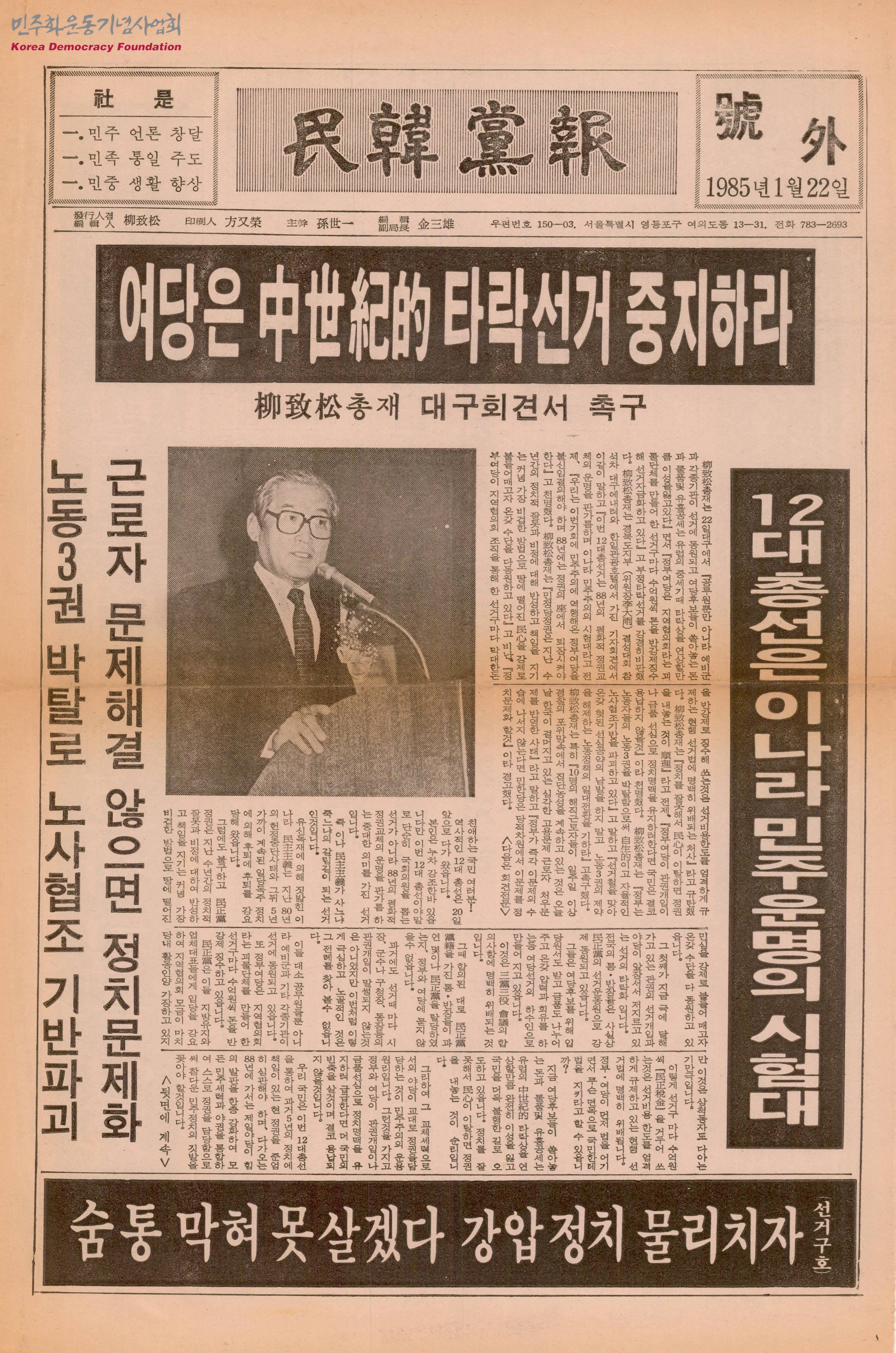 민한당보 호외