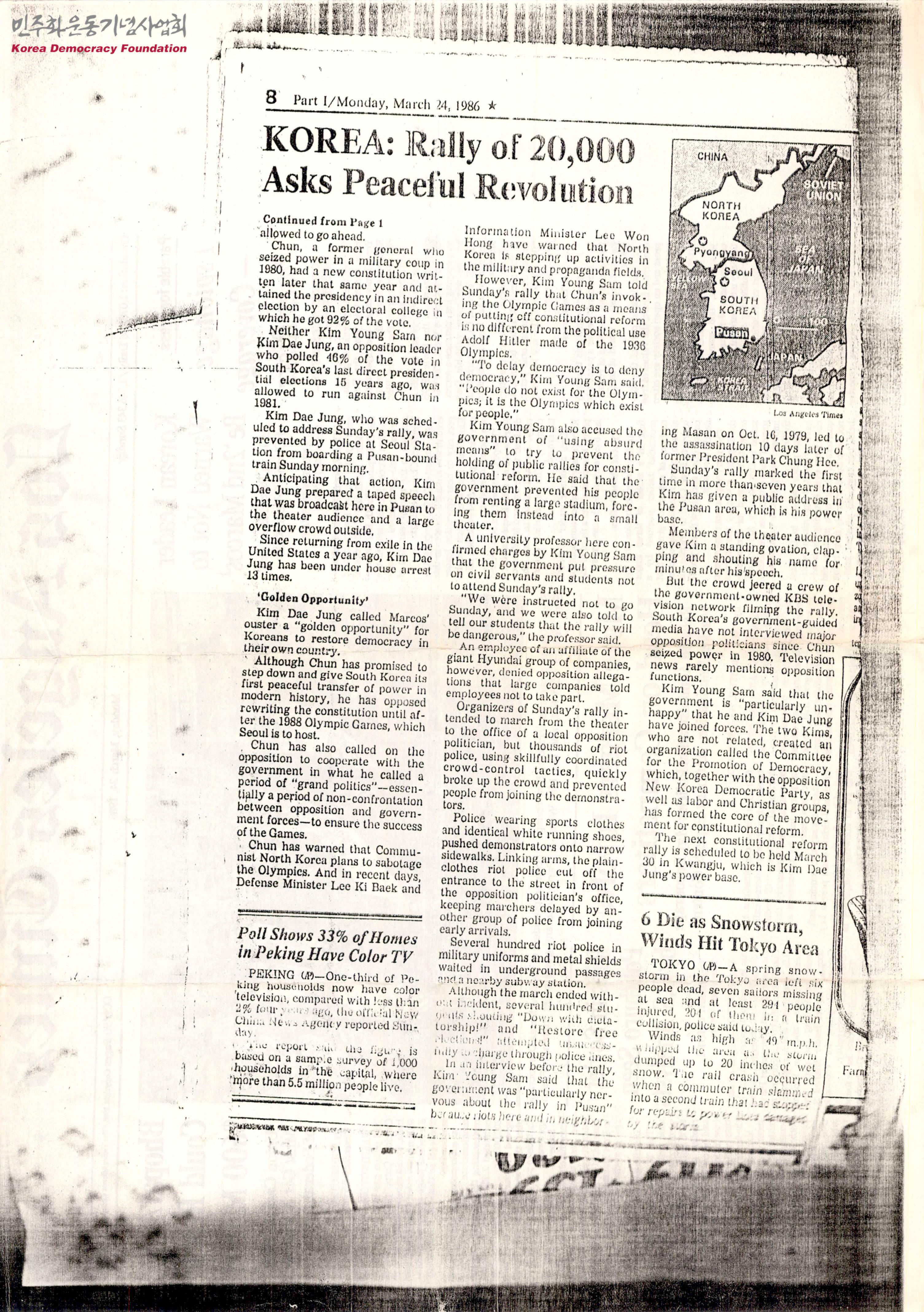 [신문스크랩]Korea: Rally of 20,000 Asks Peaceful Revolution