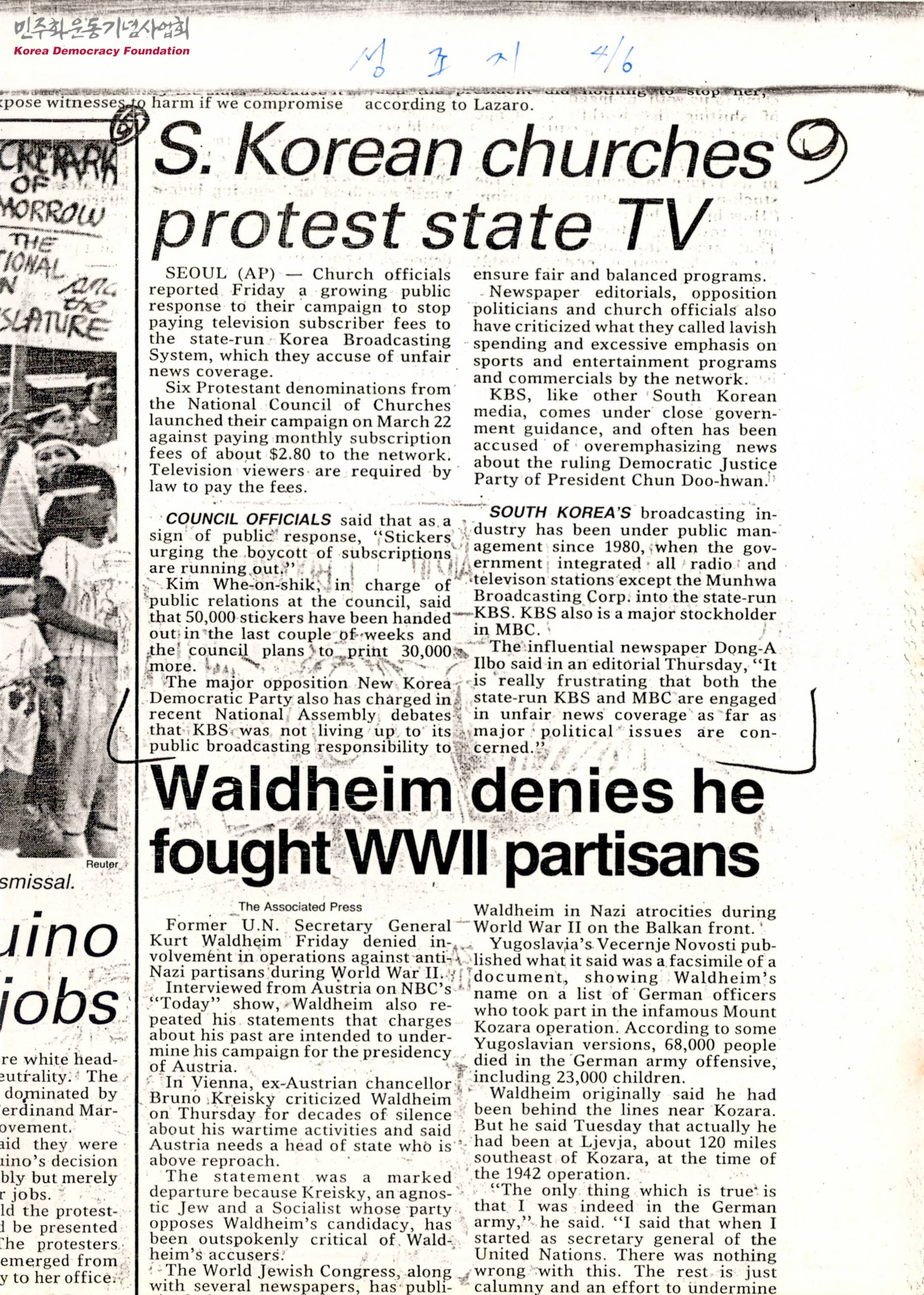 - 불공정한 뉴스 보도로 비난을 받고 있는 한국의 KBS 수신료 납부 거부 운동에 대한 대중의 호응이 커지고 있다는 내용, 야당에서도 국회 토론회에서 KBS가 공정하고 균형 잡힌 프로그램을 편성해야 할 공영방송의 책무를 다하지 못하고 있다고 주장했으며, 신문 사설과 야당 정치인들도 스포츠와 오락 프로그램, 광고에 지나치게 치중하고 사치스러운 지출을 하고 있다고 비판한 내용 등이 수록된 문서