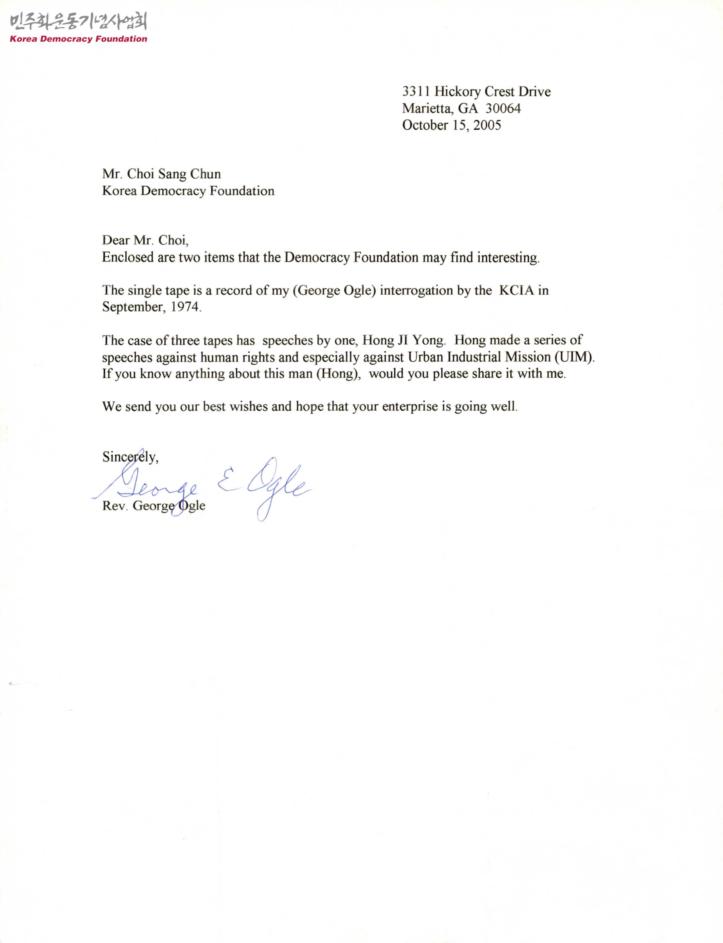 [조지 오글이 최상천에게 보내는 녹음 테이프 관련 서신]