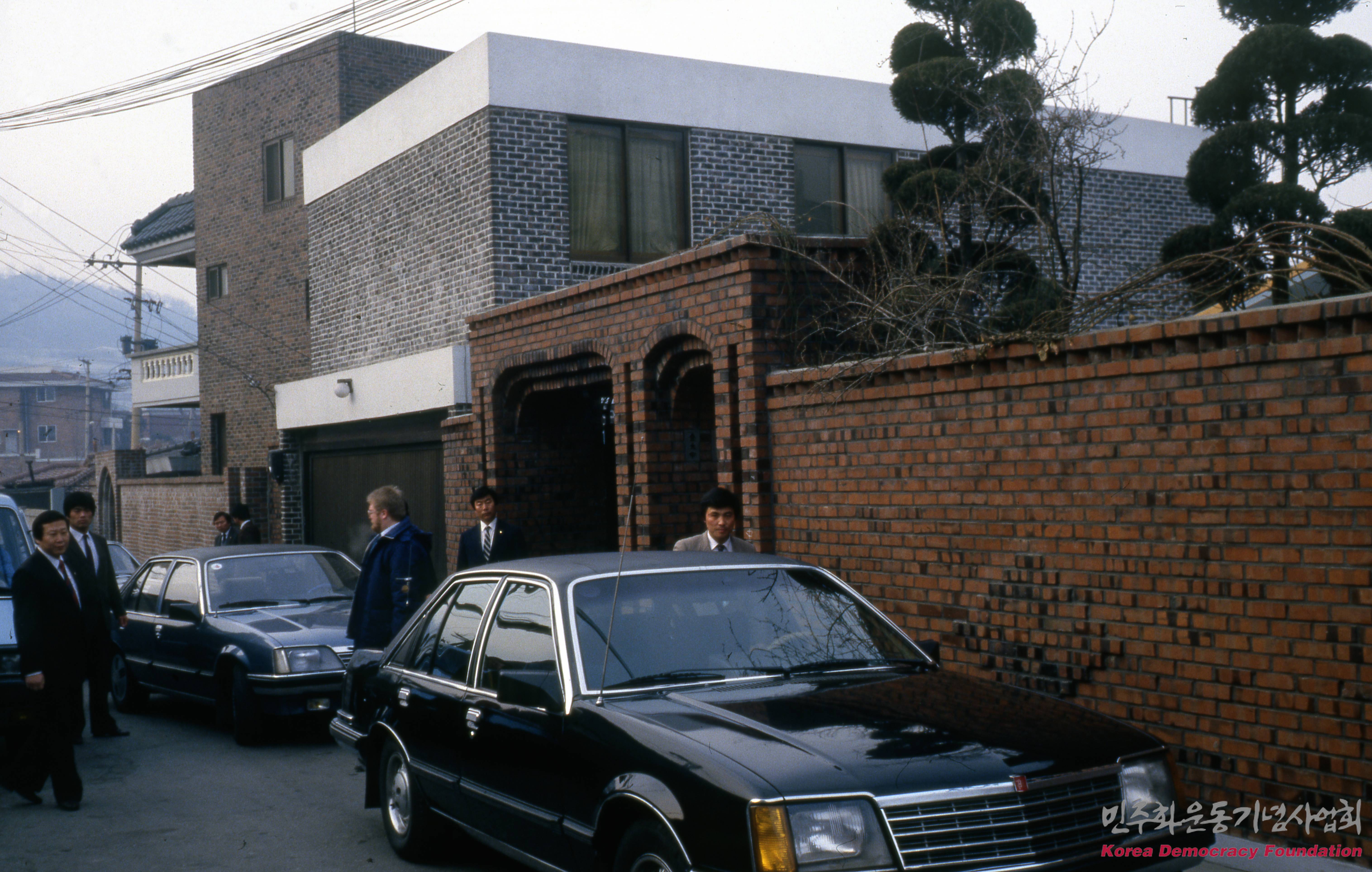 - 김대중 사저 모습, 사저에서 나오는 해외인사, 대화 중인 남성들의 모습이 담긴 슬라이드 필름