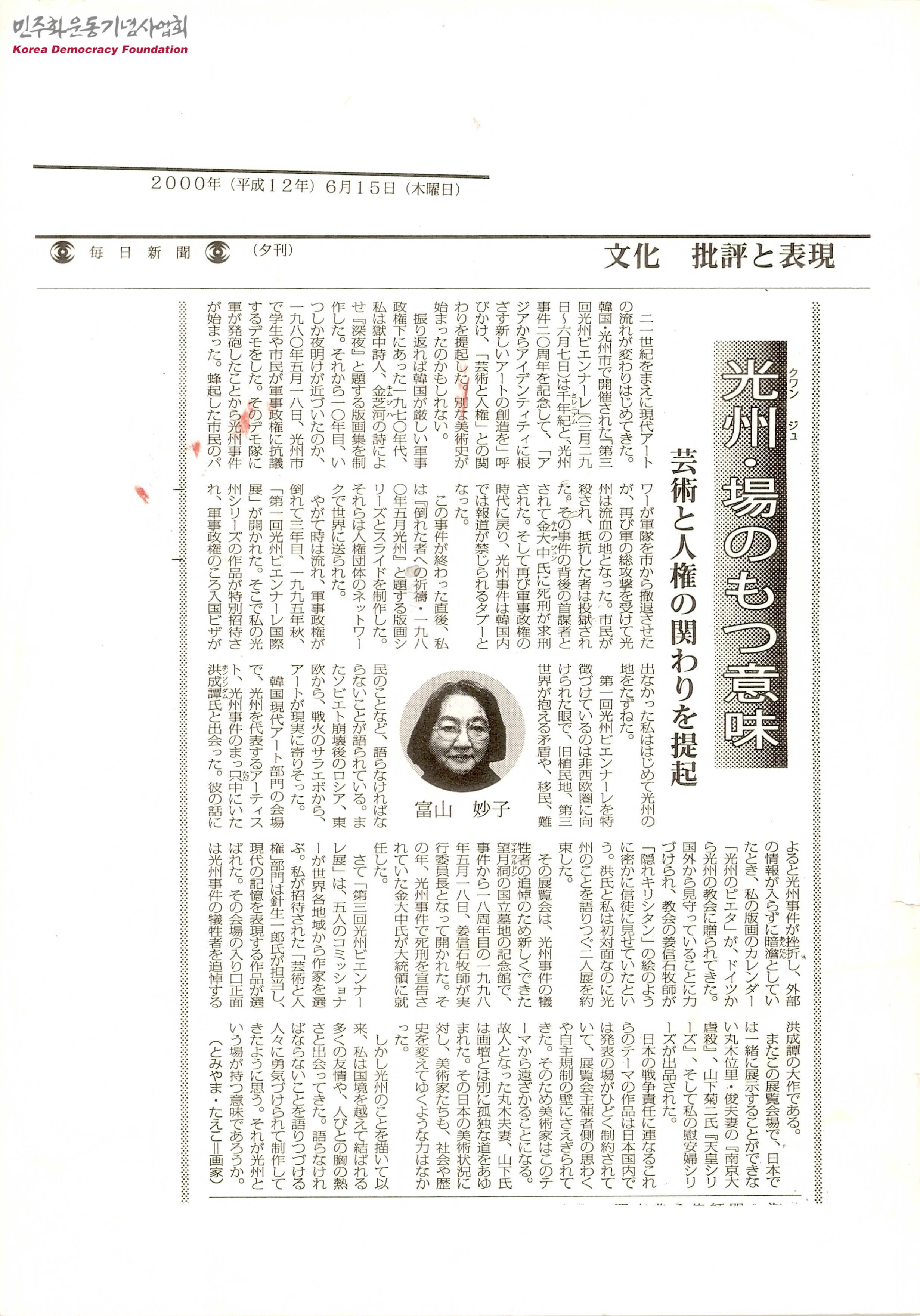 [신문스크랩]光州·場のもつ意味(광주가 갖는 의미)