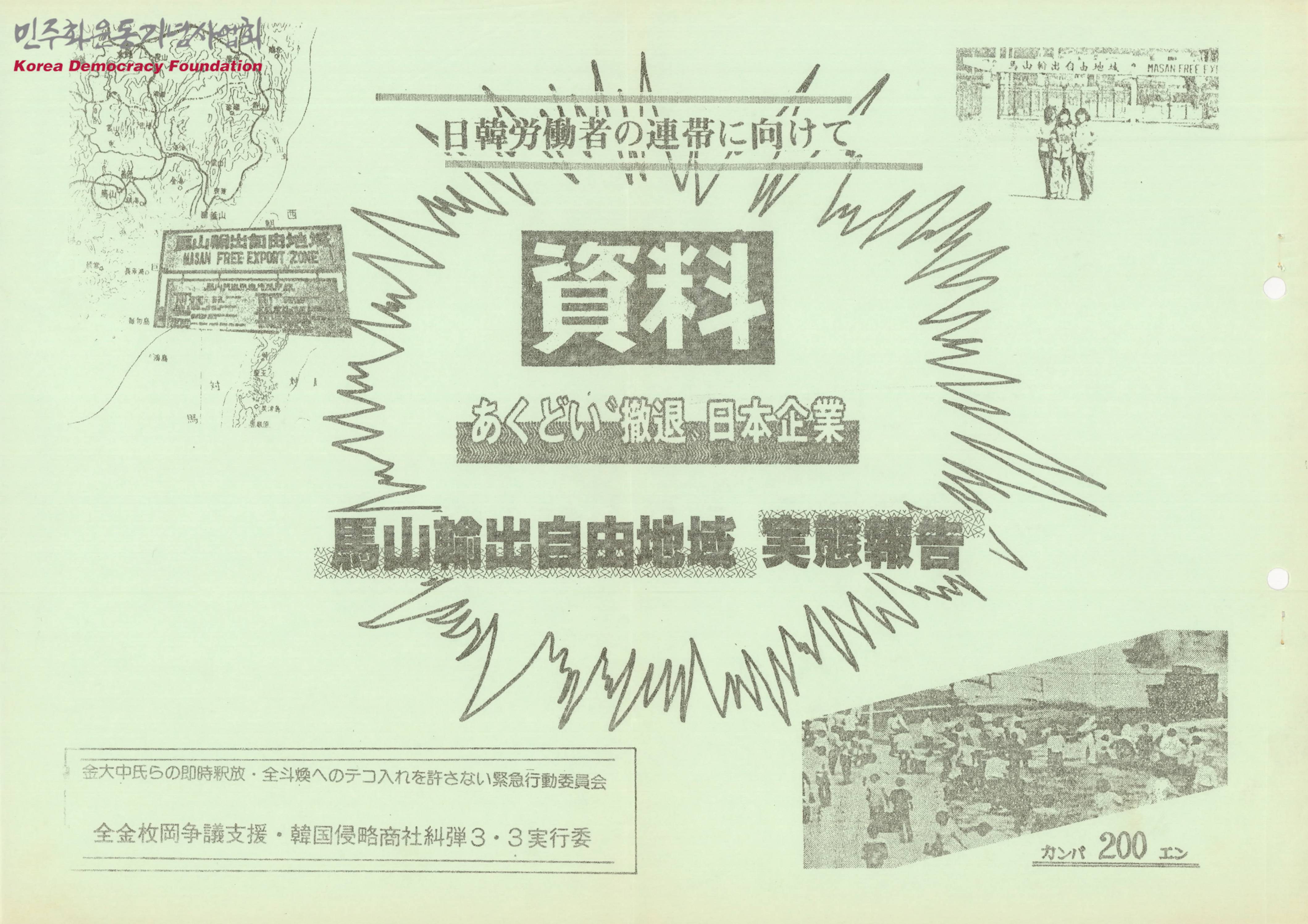 - 이동석 구원운동과 한국 마산 노동자들과의 연대 운동 등 3·3실행위원회가 전개한 투쟁과 그 과정에서 있었던 일을 전하는 글과 마산 수출자유구역에 진출한 일본 기업들이 한국 노동자들에게 임금을 지불하지 않고 도산해 철수한 사건을 다룬 기사 등 마산수출자유지역의 실태를 담고 있는 자료들의 모음집