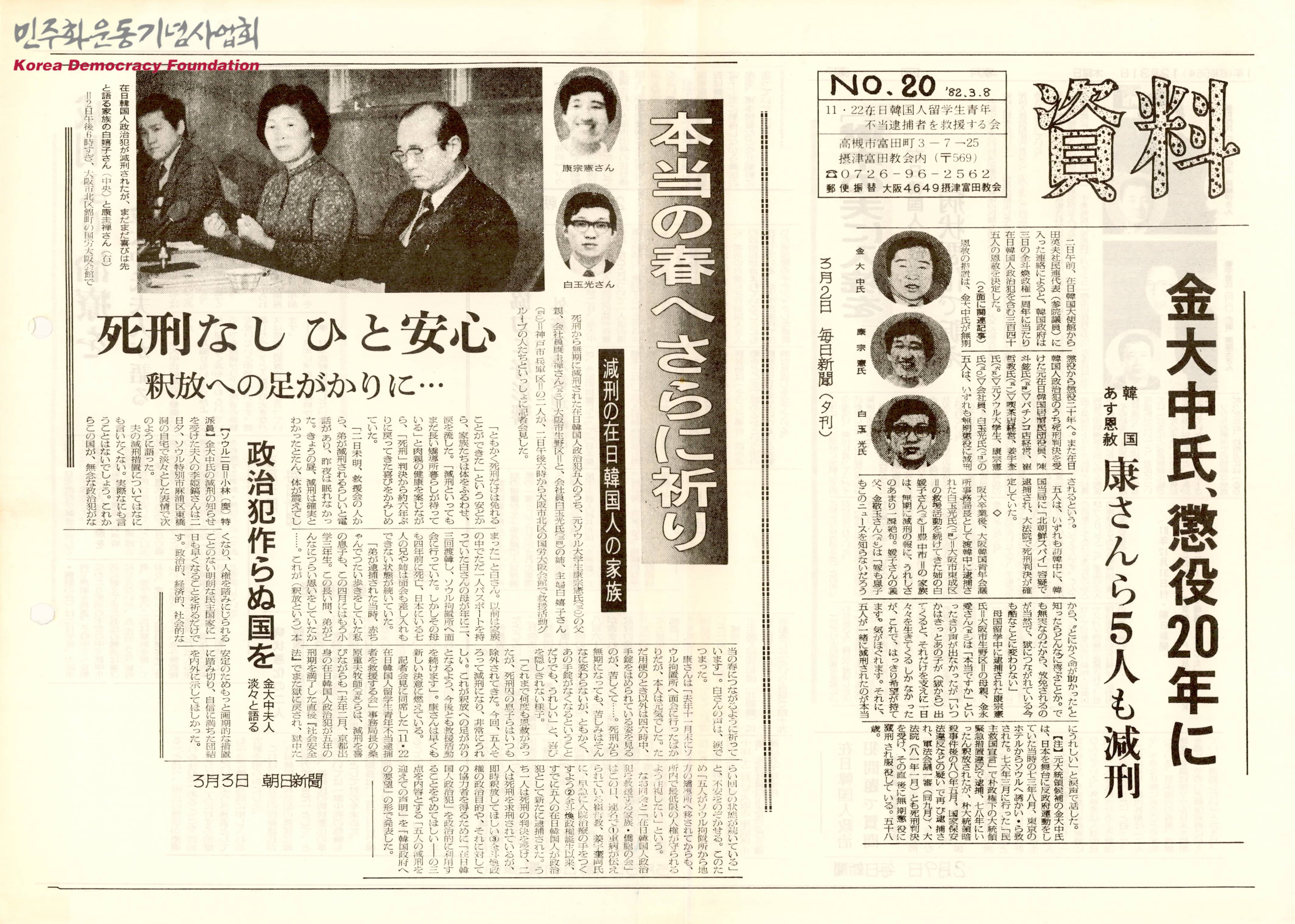 - 재일한국대사관의 정보에 따르면 한국정부는 전두환 정권 1주년을 맞아 김대중씨를 비롯하여 재일한국인 정치범을 포함한 345명의 구속된 사람들의 은사를 결정하였다는 내용이 수록된 문서