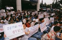 - 생산자 및 기증자가 ‘박용수’인 사진의 사용은 구매신청을 클릭하여 직접 사진 구매 신청을 하실 수 있습니다. 생산자 및 기증자가 ‘경향신문사’인 사진의 사용은 경향신문사 담당자(02-3701-1635)를 통해 구매하실 수 있습니다. 그 외의 생산자 및 기증자는 민주화운동기념사업회 사료관 담당자( hyunchaek@kdemo.or.kr / 02-6440-8961 )에 문의바랍니다.