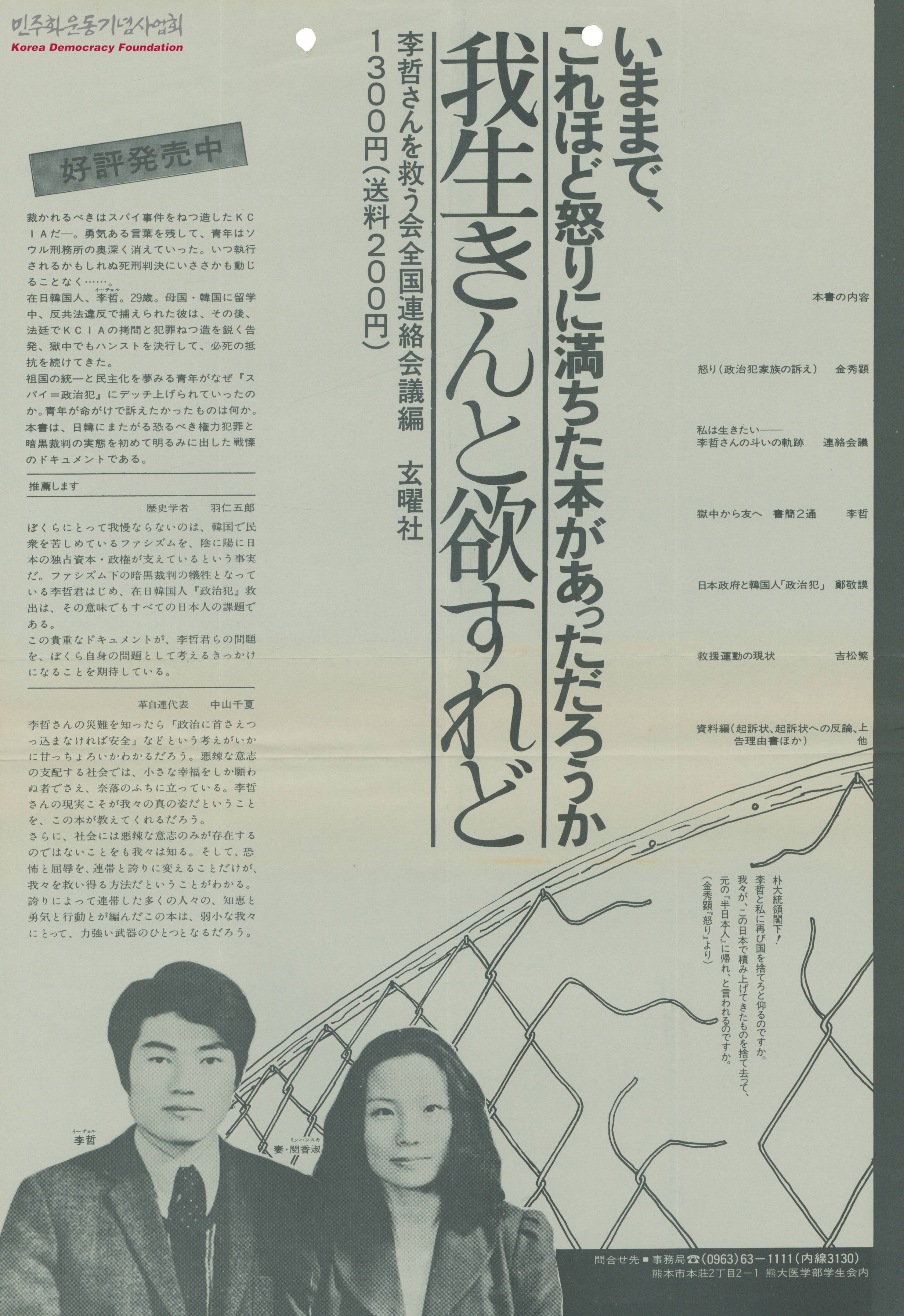 - 재일한국인 간첩조작 사건으로 서울교도소에 갇히게된 이철에 관련된 책의 홍보문으로 책의 목차와 요약정보가 수록됨
