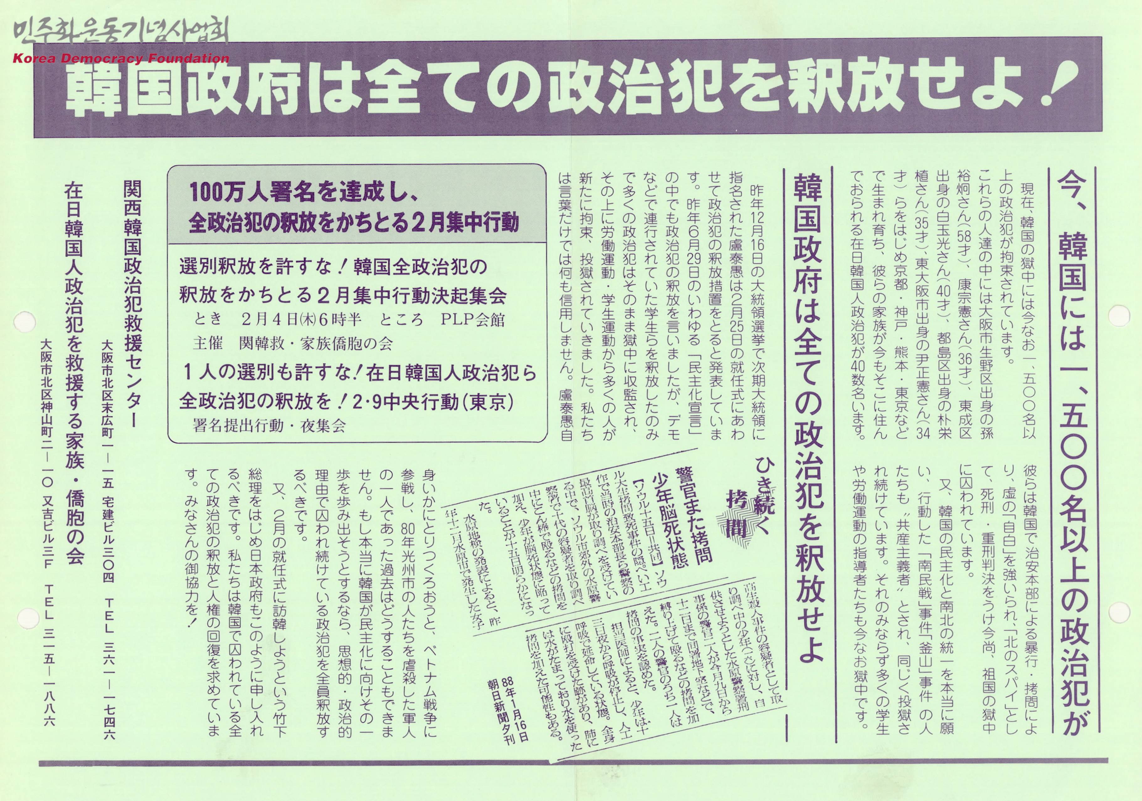 한국정부는 모든 정치범을 석방하라!