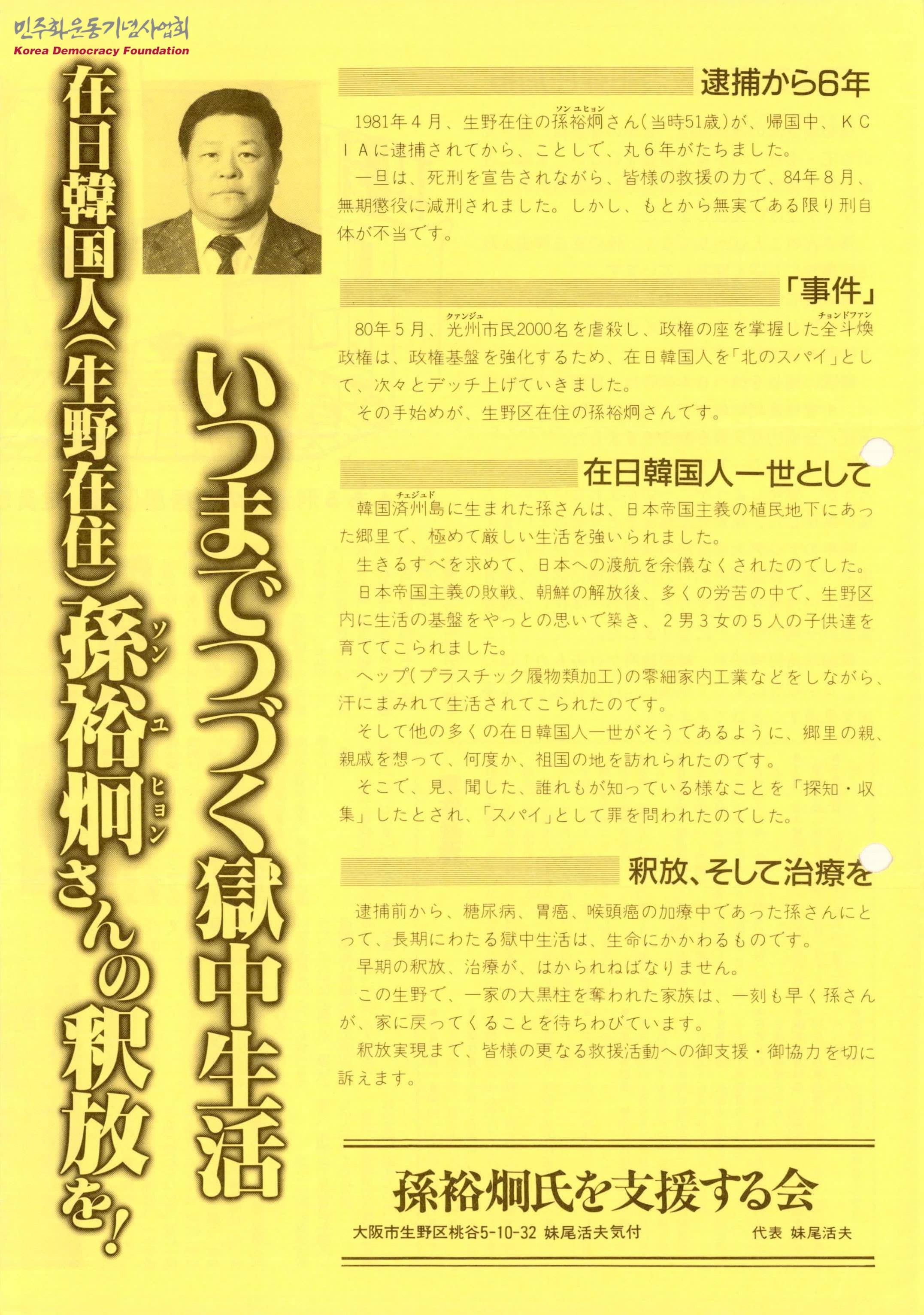 재일한국인 손유형씨 석방하라 언제까지 계속되는 옥중생활