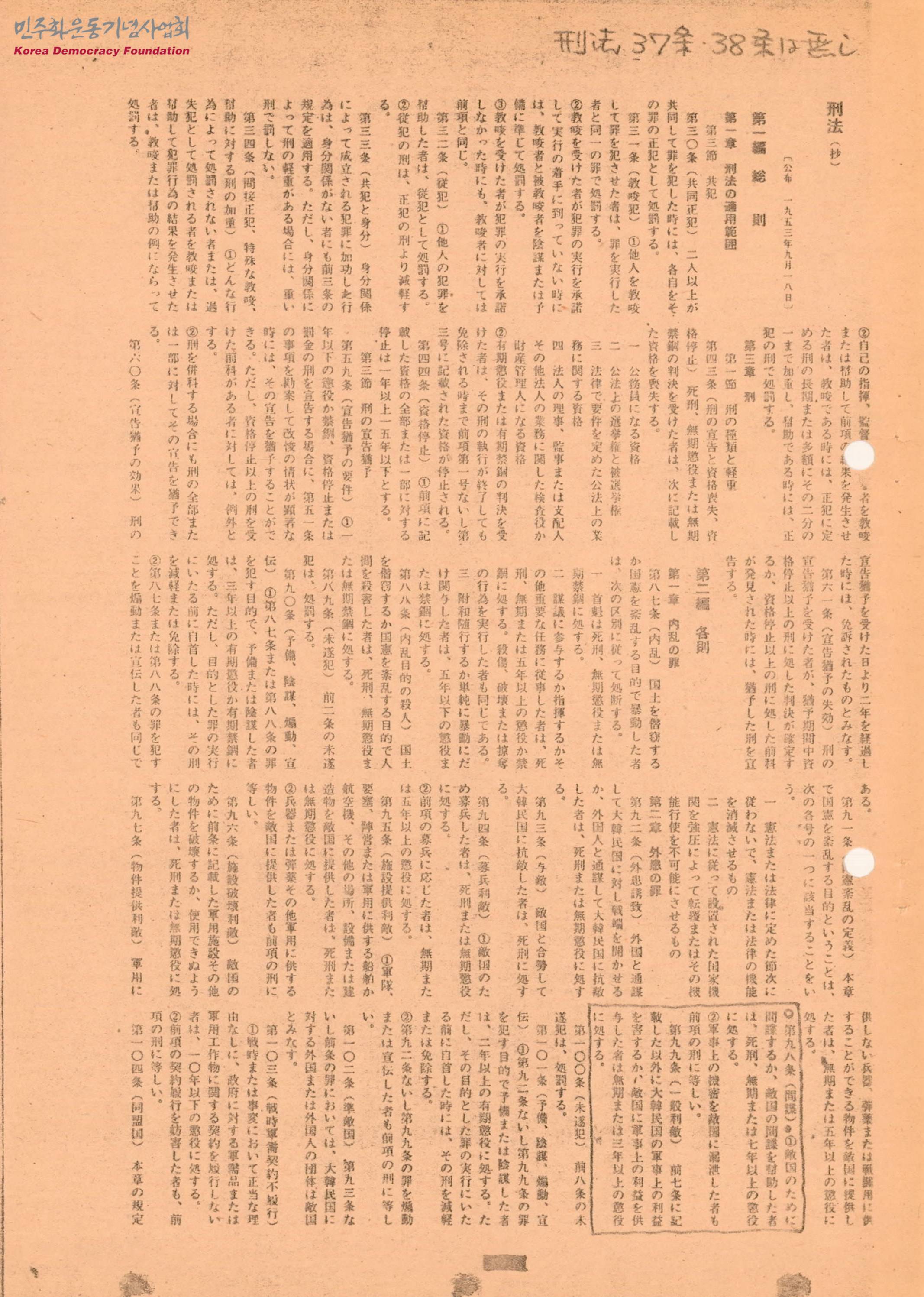 - 형법 제37조 제1편 총칙·제2편 각칙, 국가보안법 제1장 죄와 형벌·제2장 특별형사소송규정, 반공법 등 법령에 대한 내용이 수록된 문서