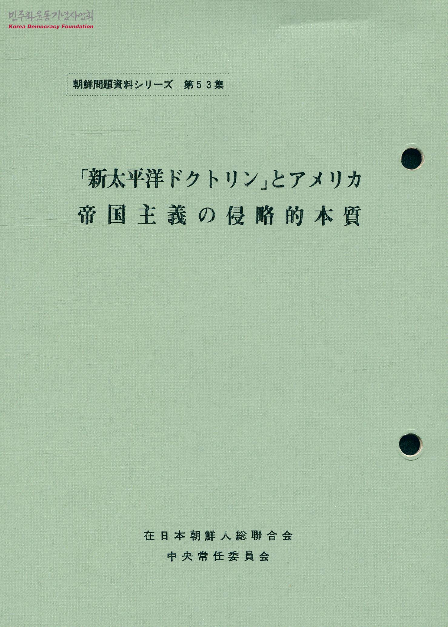 - 미국의 아시아 침략 정책과 본성에 대해 다룬 자료집으로 목차는 다음과 같음 -신태평양 독트린'은 미국의 아시아 침략 정책이다 -제국주의의 침략적 본성은 변하지 않는다