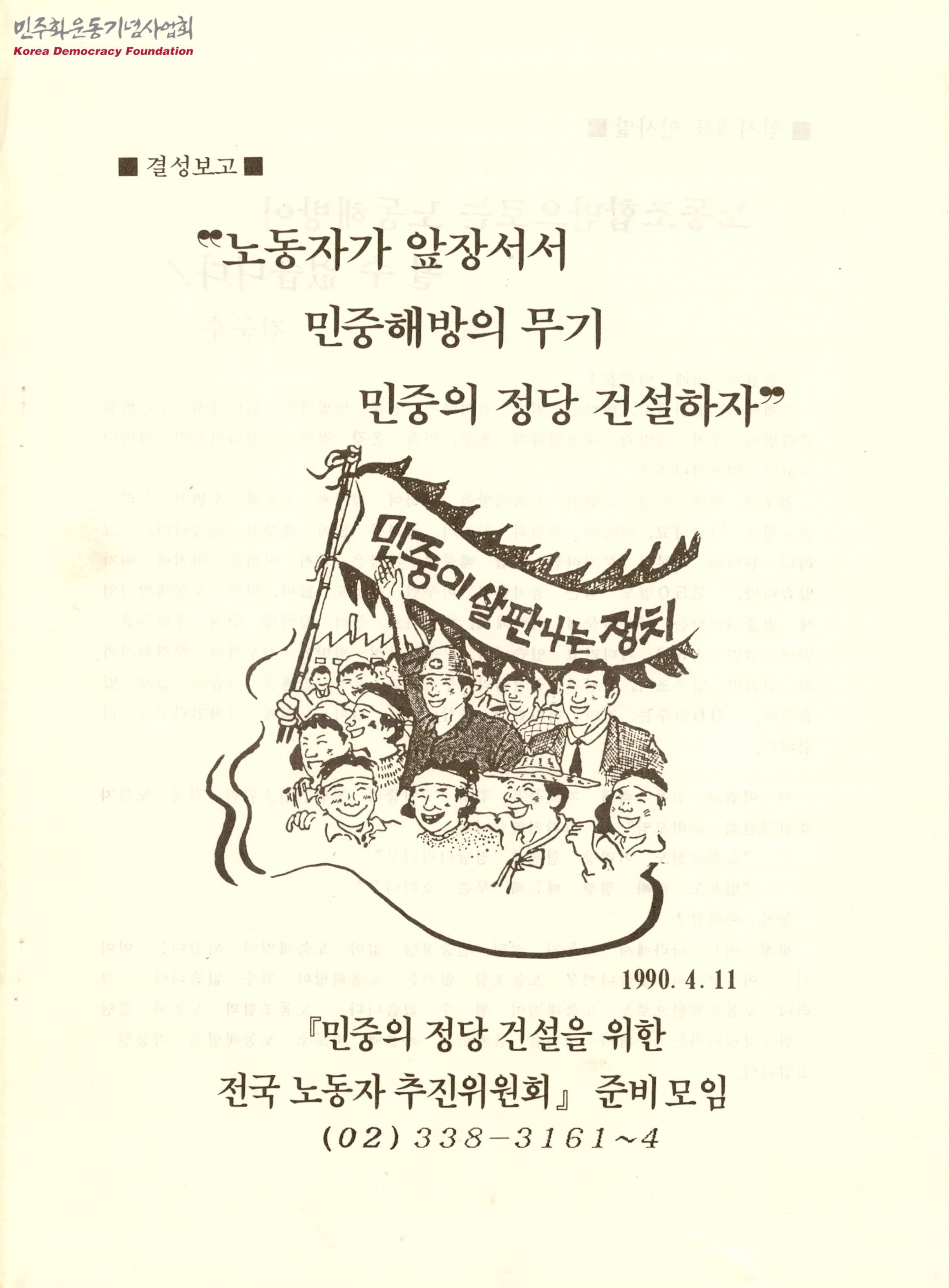 결성보고: 노동자가 앞장서서 민중해방의 무기 민중의 정당 건설하자